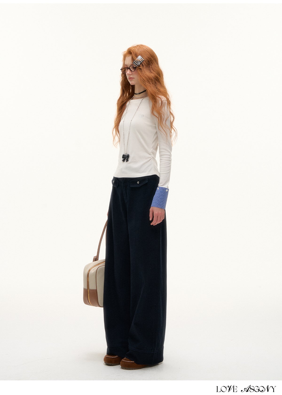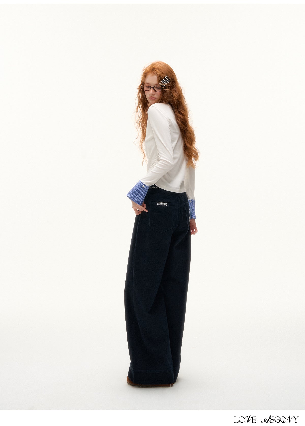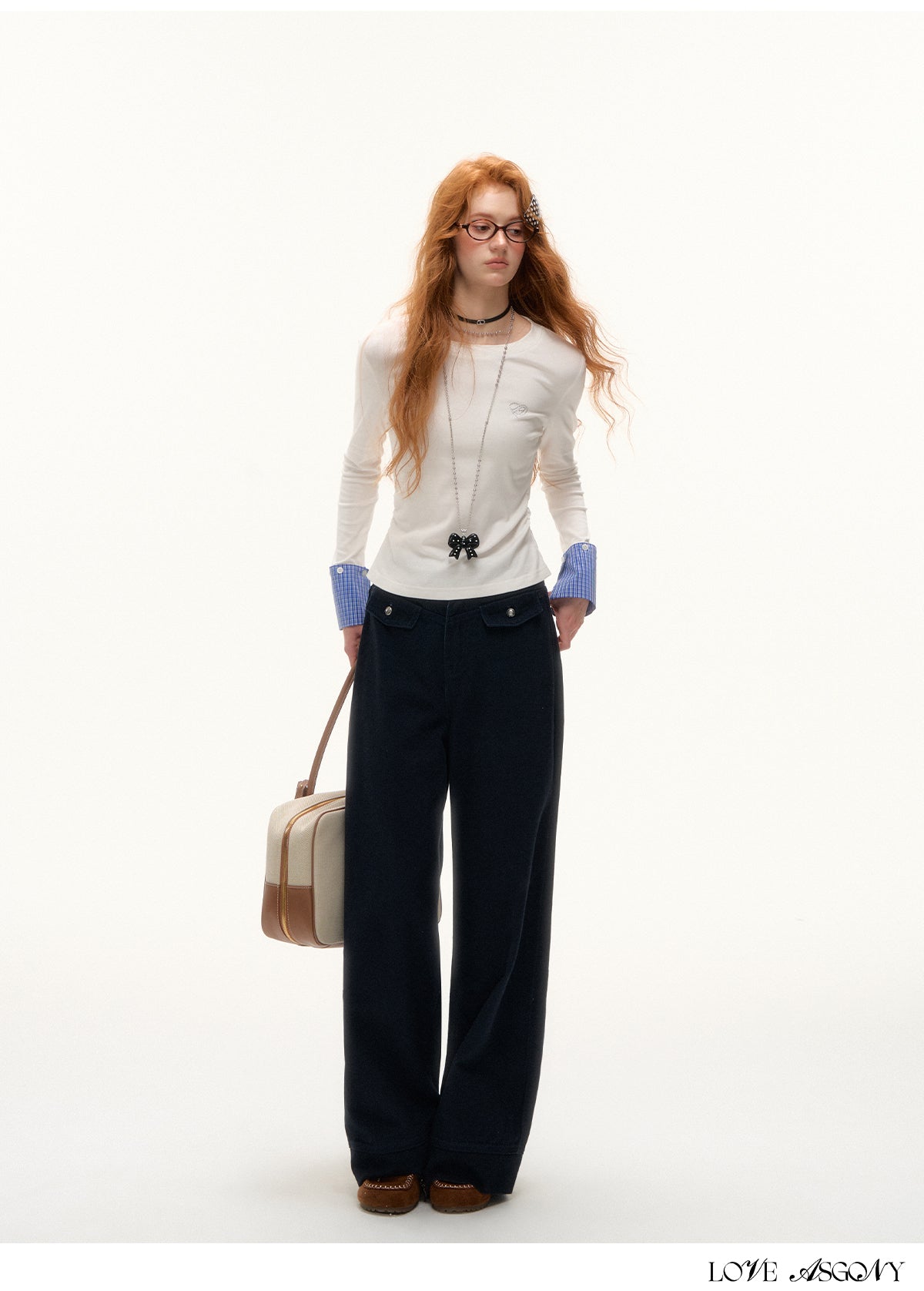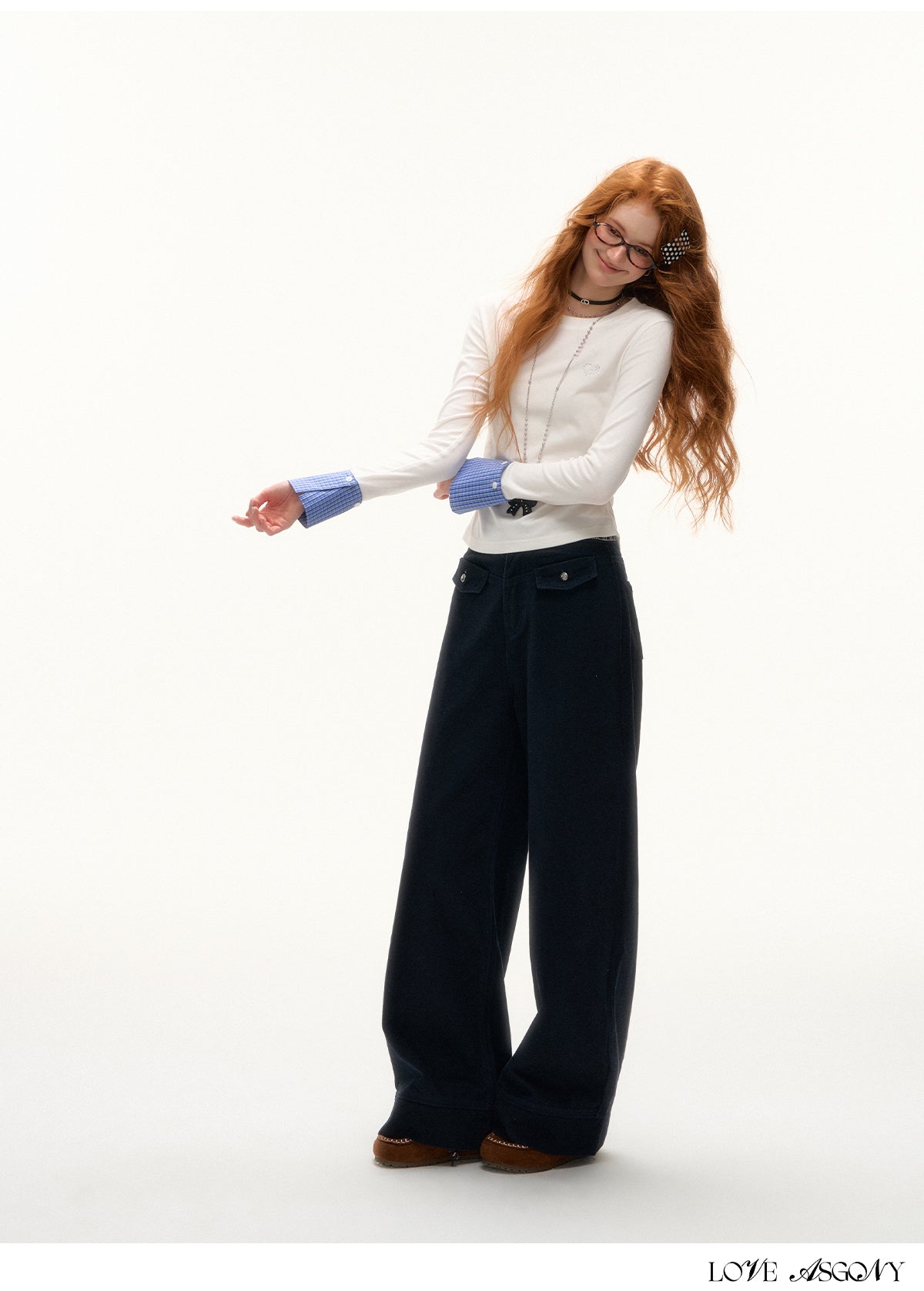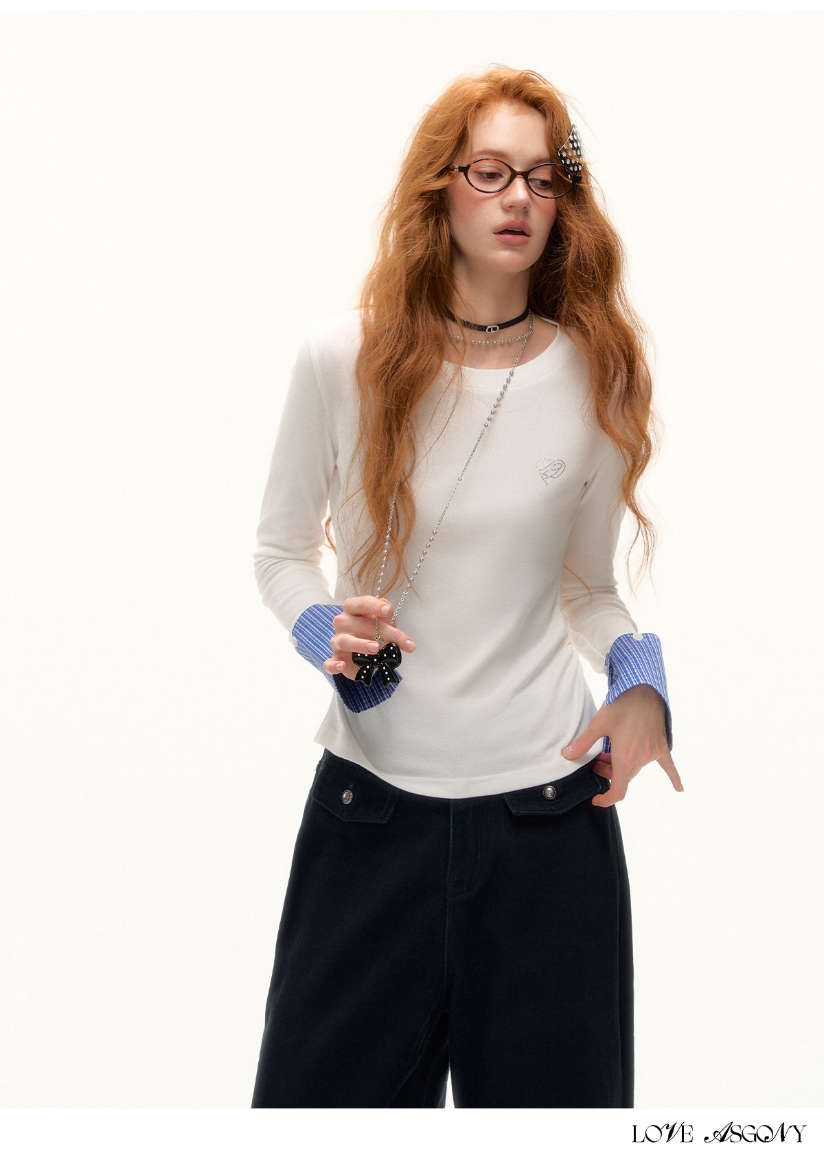 AsGony Detachable Cuff Plaid Long Sleeve T-Shirt