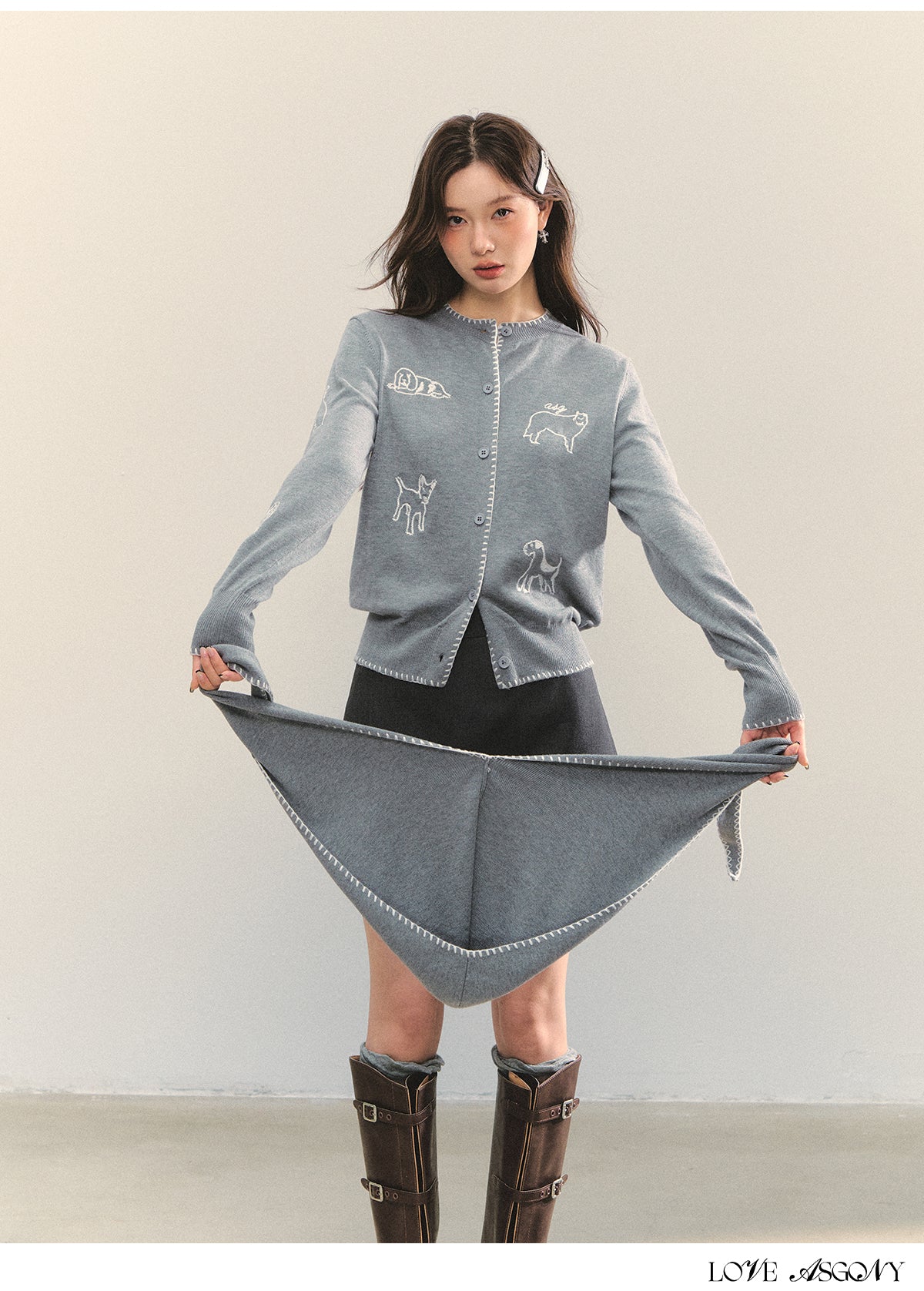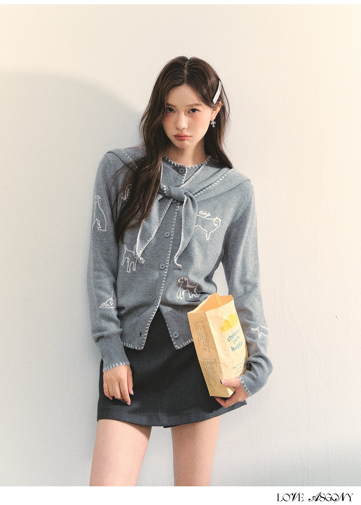 Add a playful touch to your wardrobe with this adorable puppy embroidery knit set.