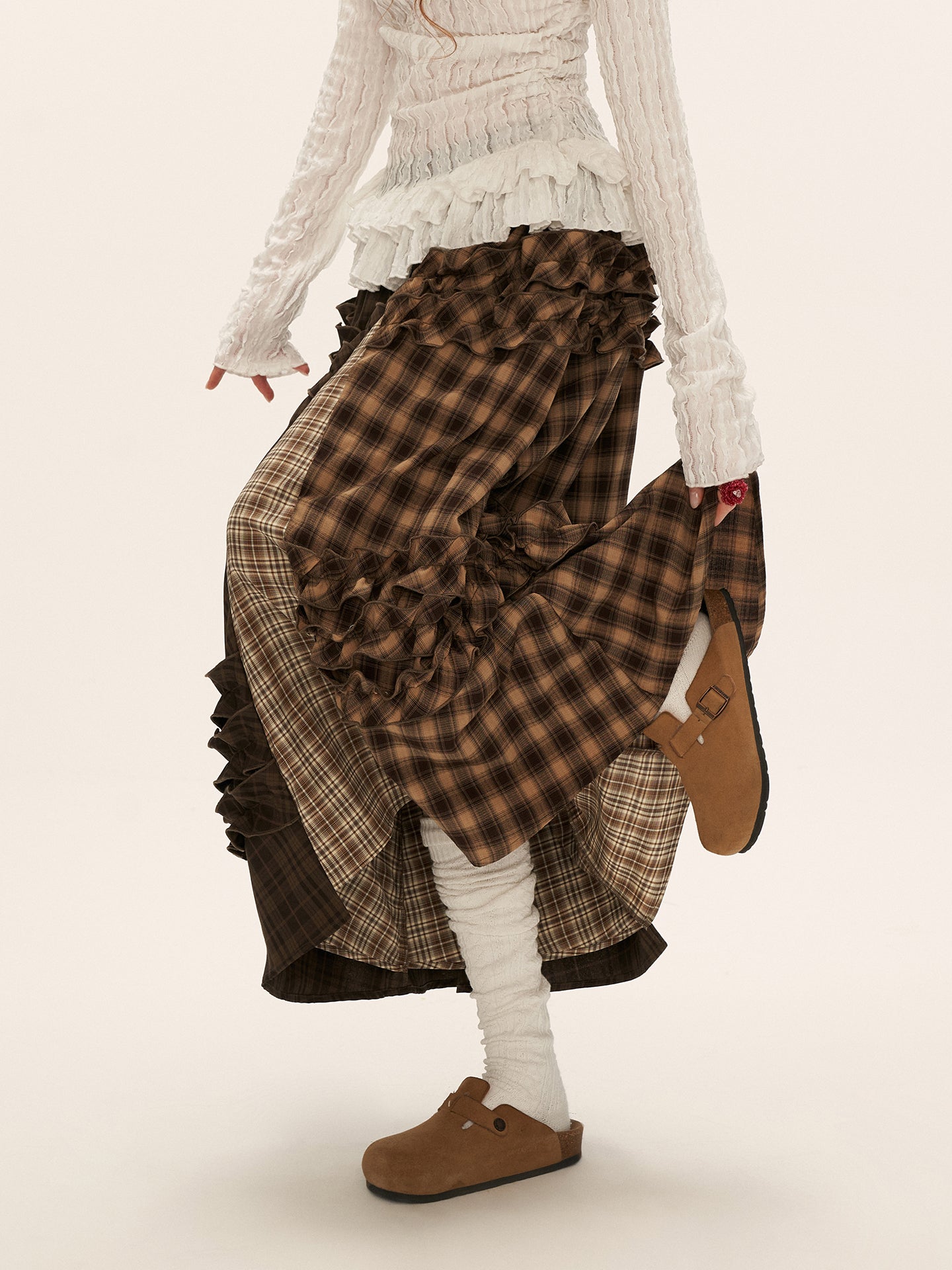 MAMC Brown Plaid Patchwork Maxi Skirt