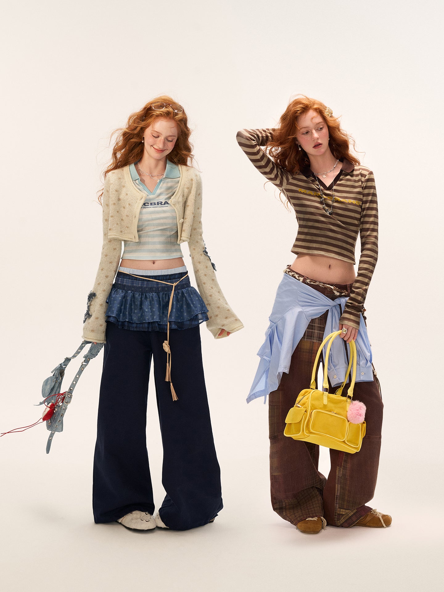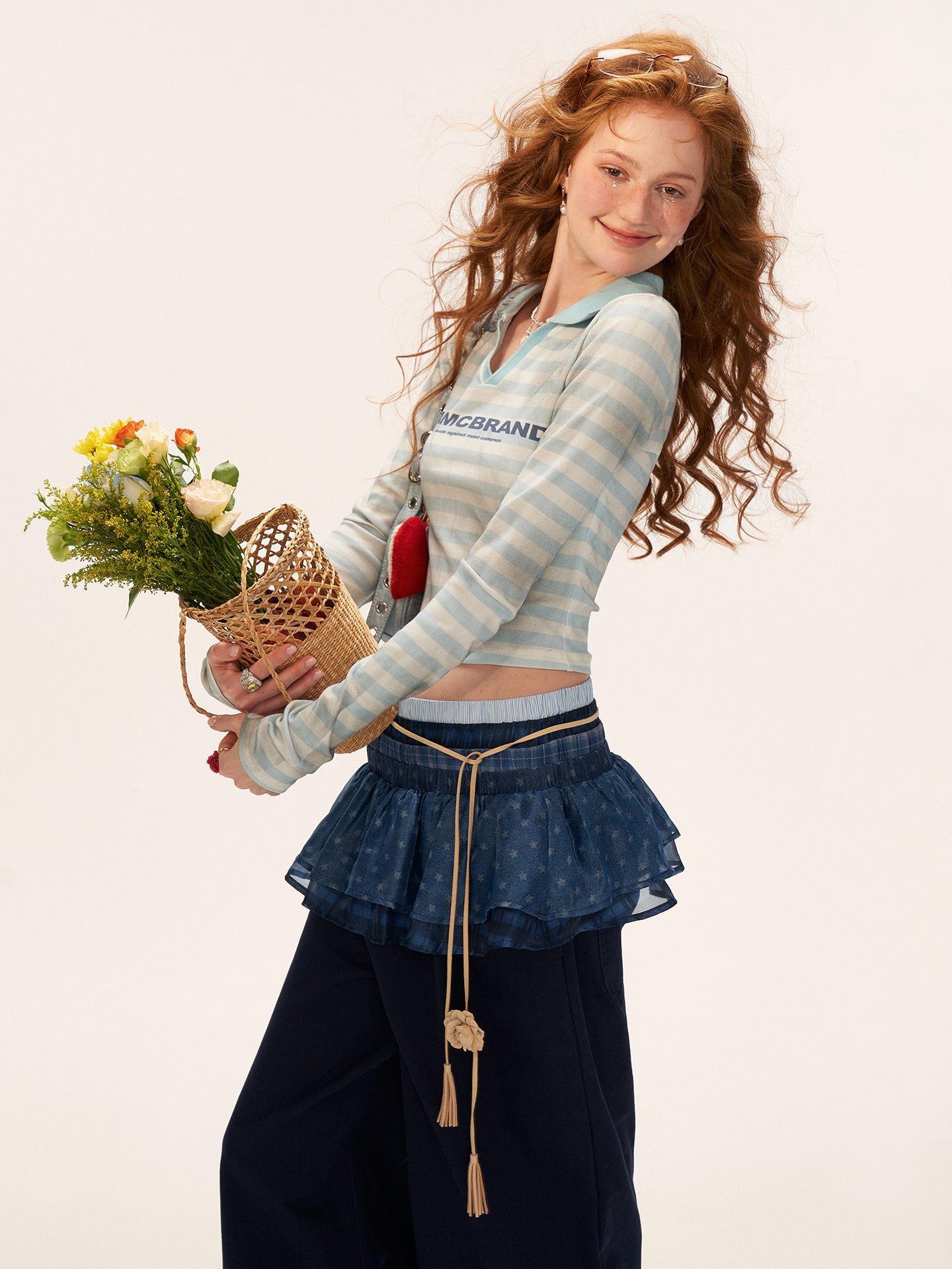 MAMC Distressed Stripe Long Sleeve Polo Shirt