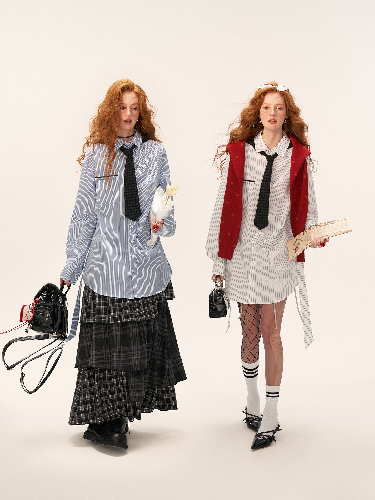 MAMC Longline Striped Bow Tie Blouse | Women's Oversized Relaxed Shirt for Lazy