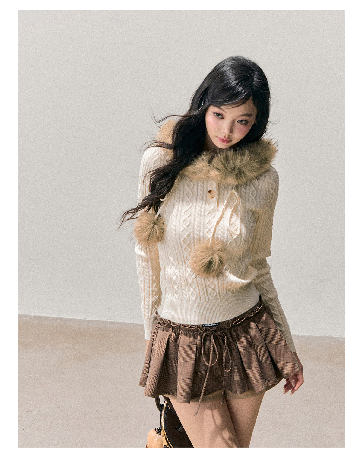 ShaoYeYan Aomalm Lingering Snow Traces Hooded Cable Knit Sweater
