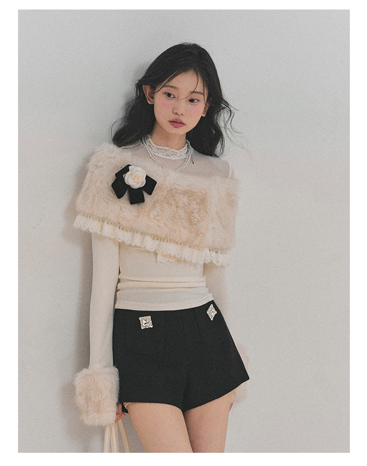 ShaoYeYan Aomalm Melting Snow Whispers Plush Cape Top