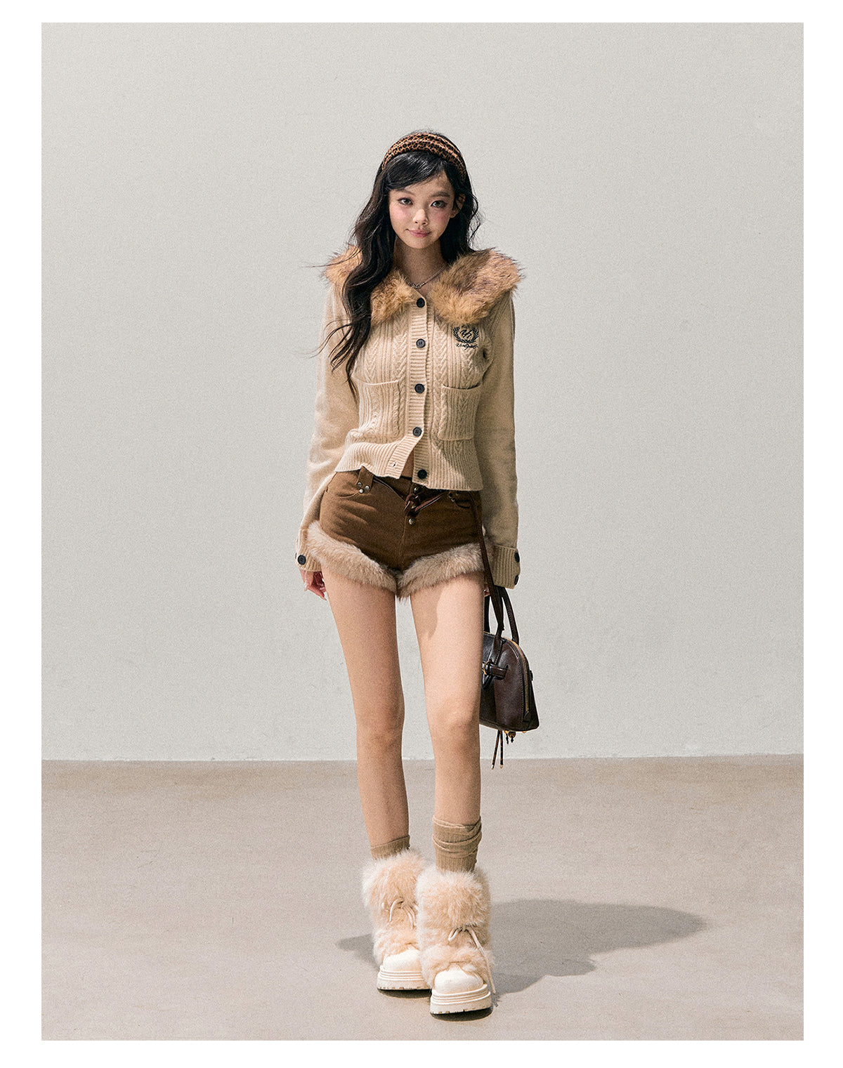 ShaoYeYan Aomalm Snow Falls Silently Plush Cardigan