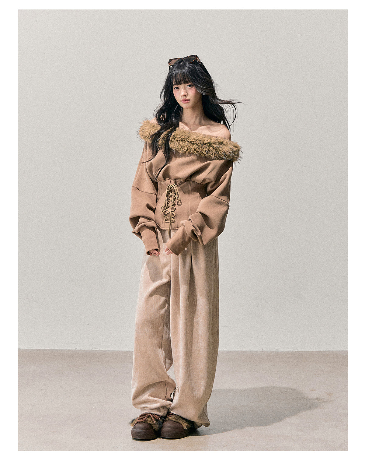 ShaoYeYan Aomalm Sunset Warmth Off-Shoulder French Plush Top