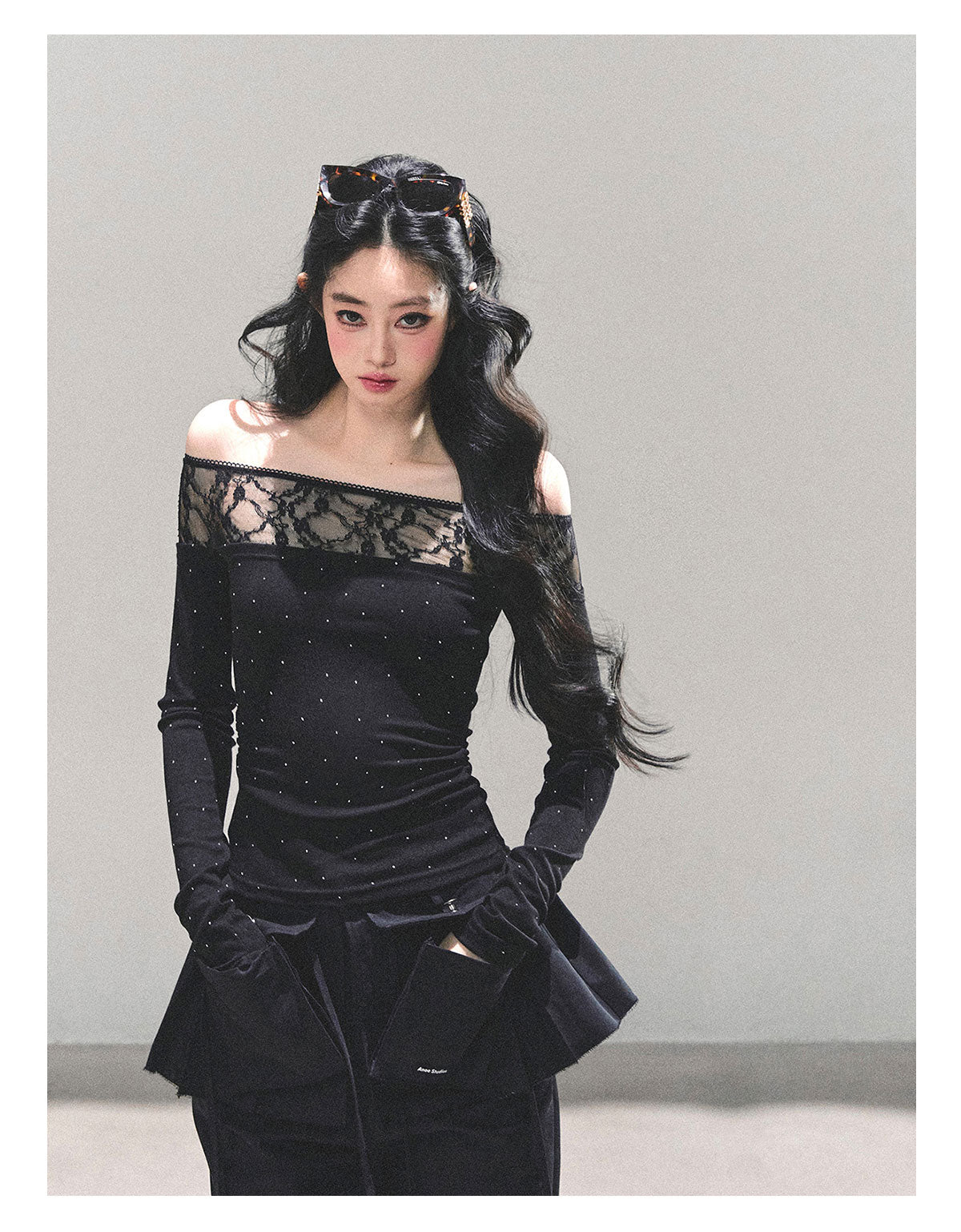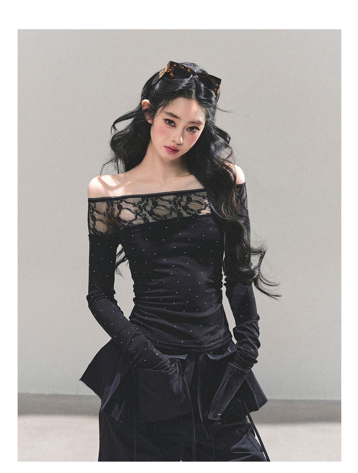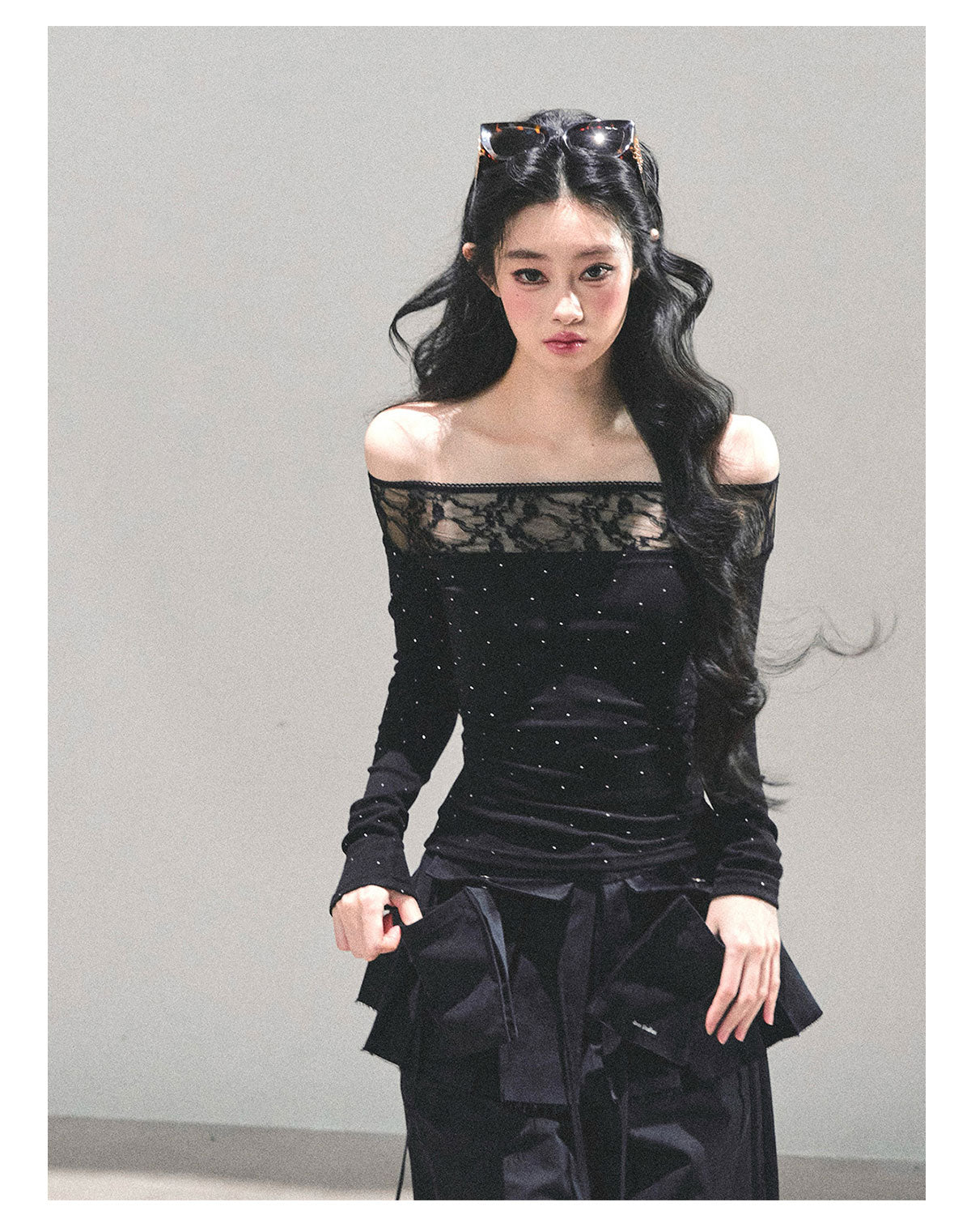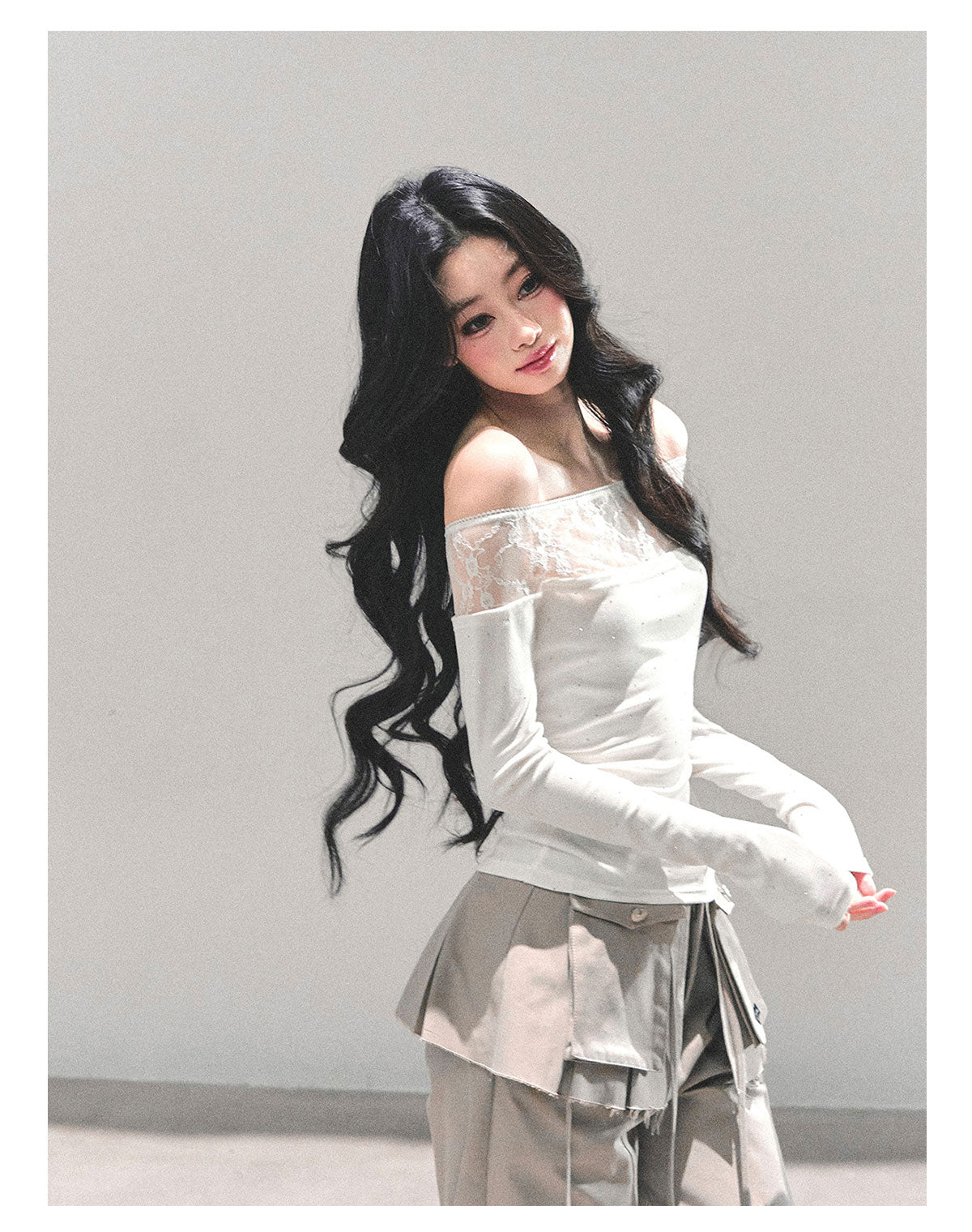 ShaoYeYan Blank Warmth Off-Shoulder Long Sleeve T-Shirt