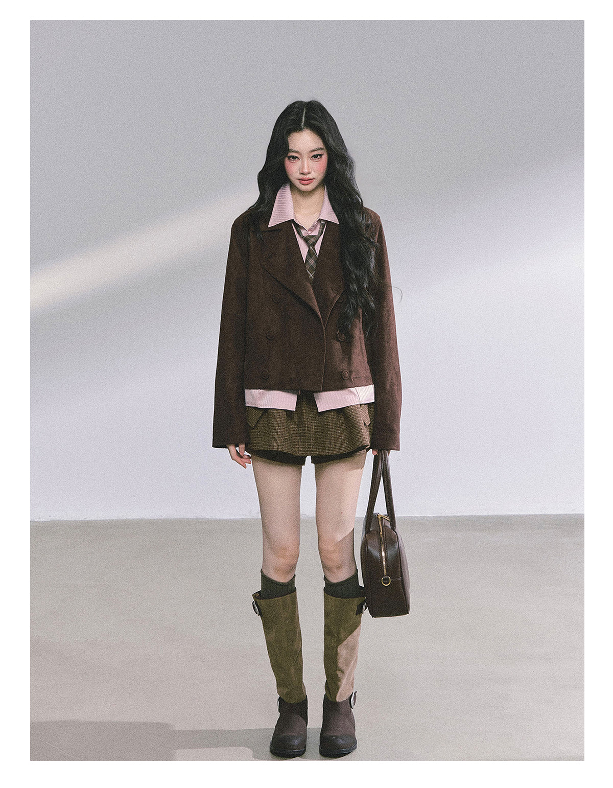 Channel sophisticated British drama style with this elegant fake two-layer blazer.