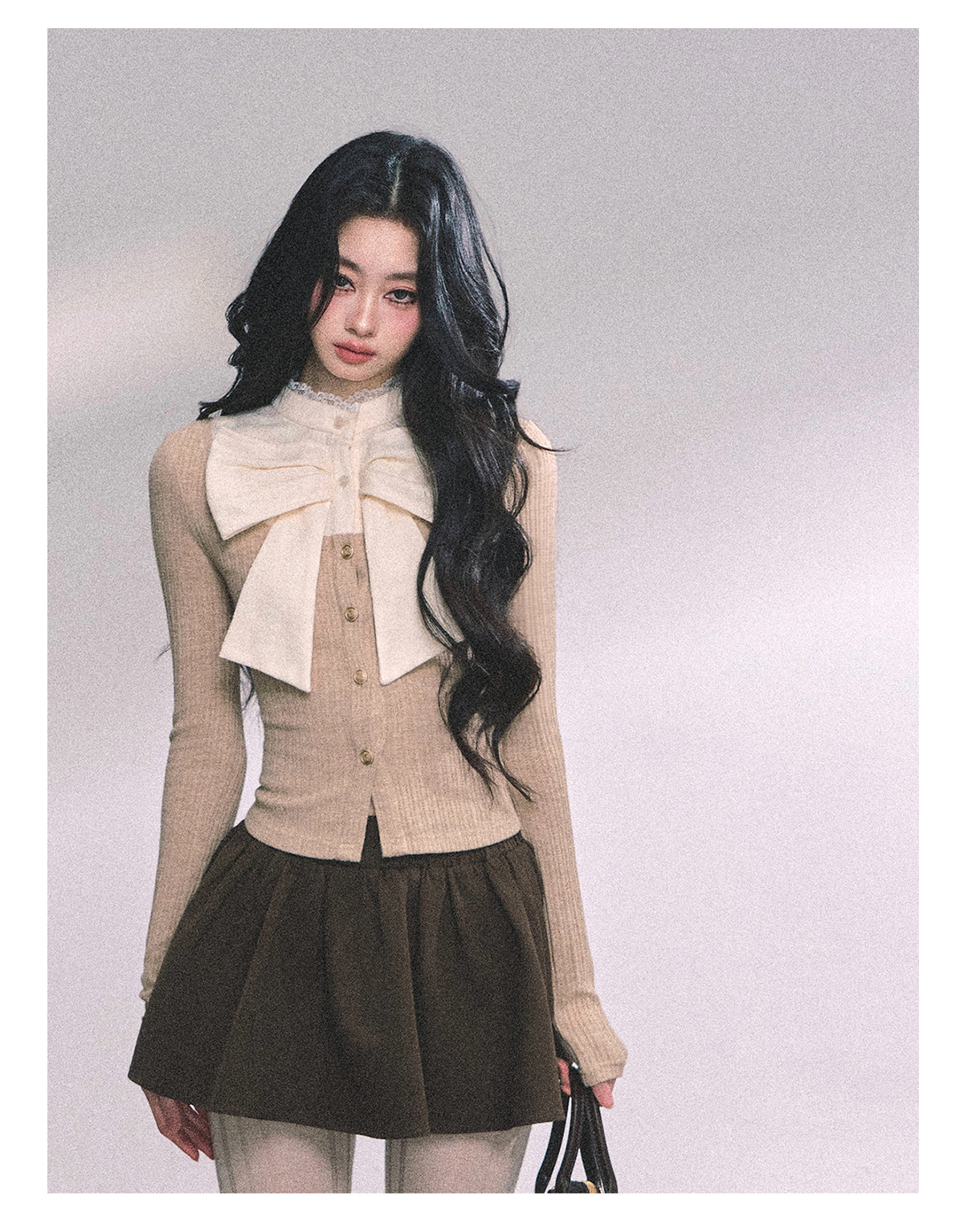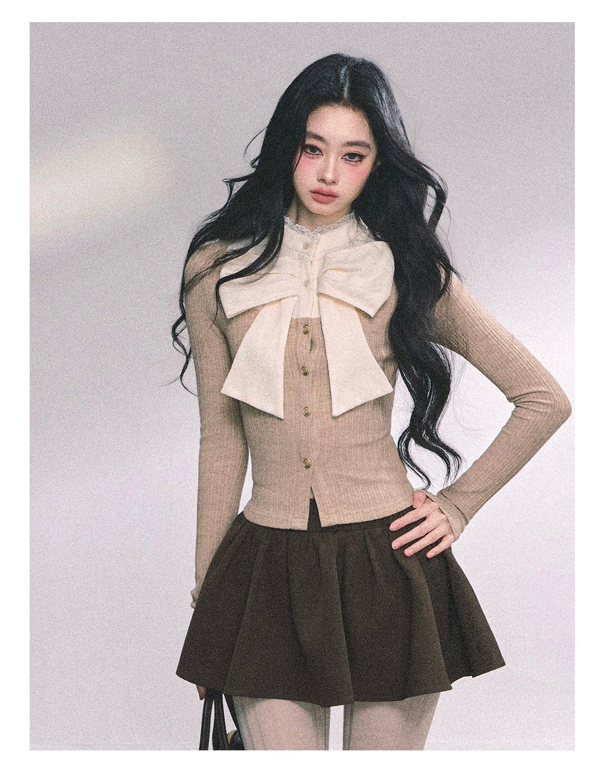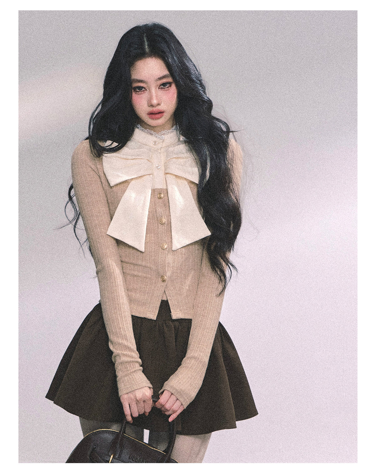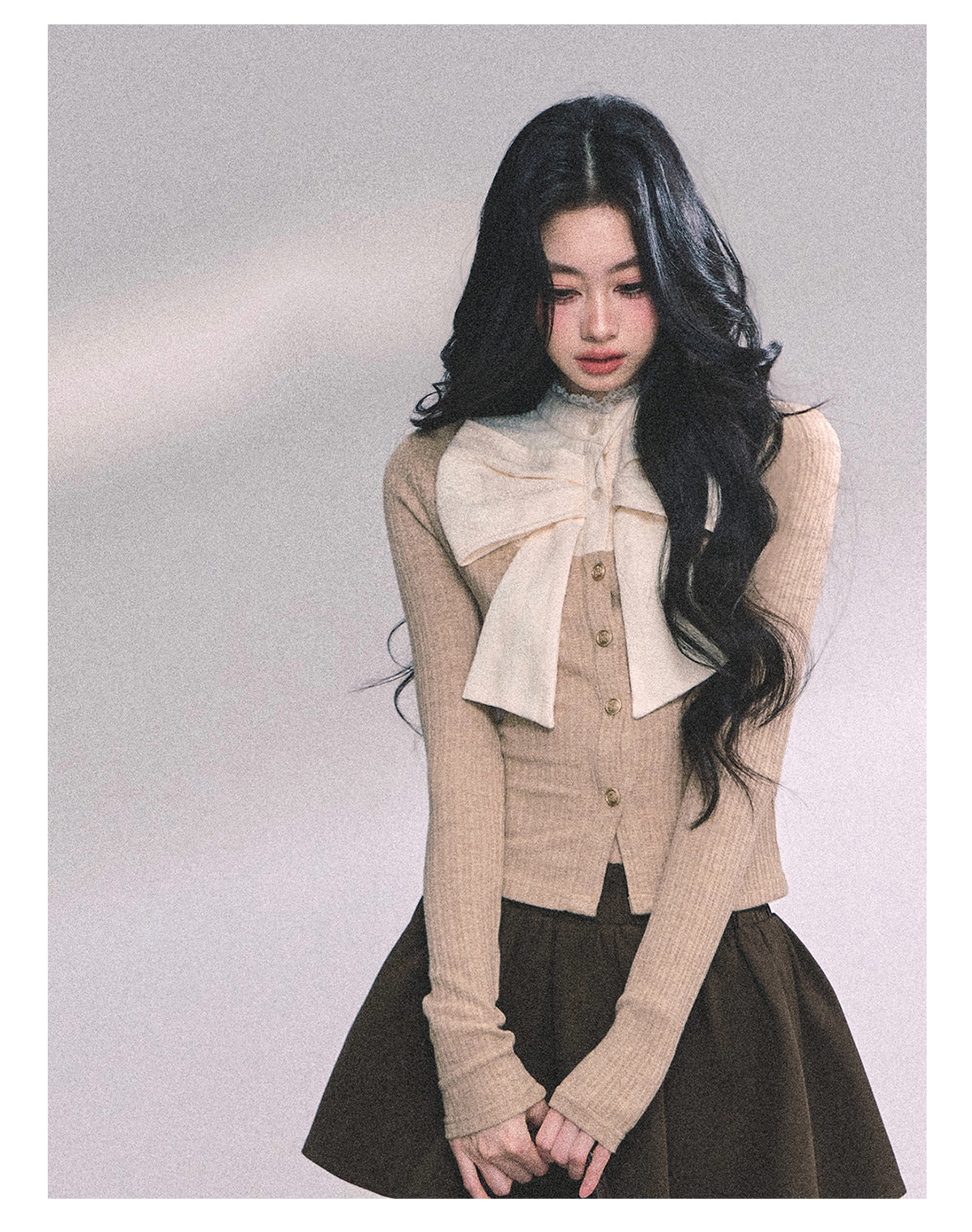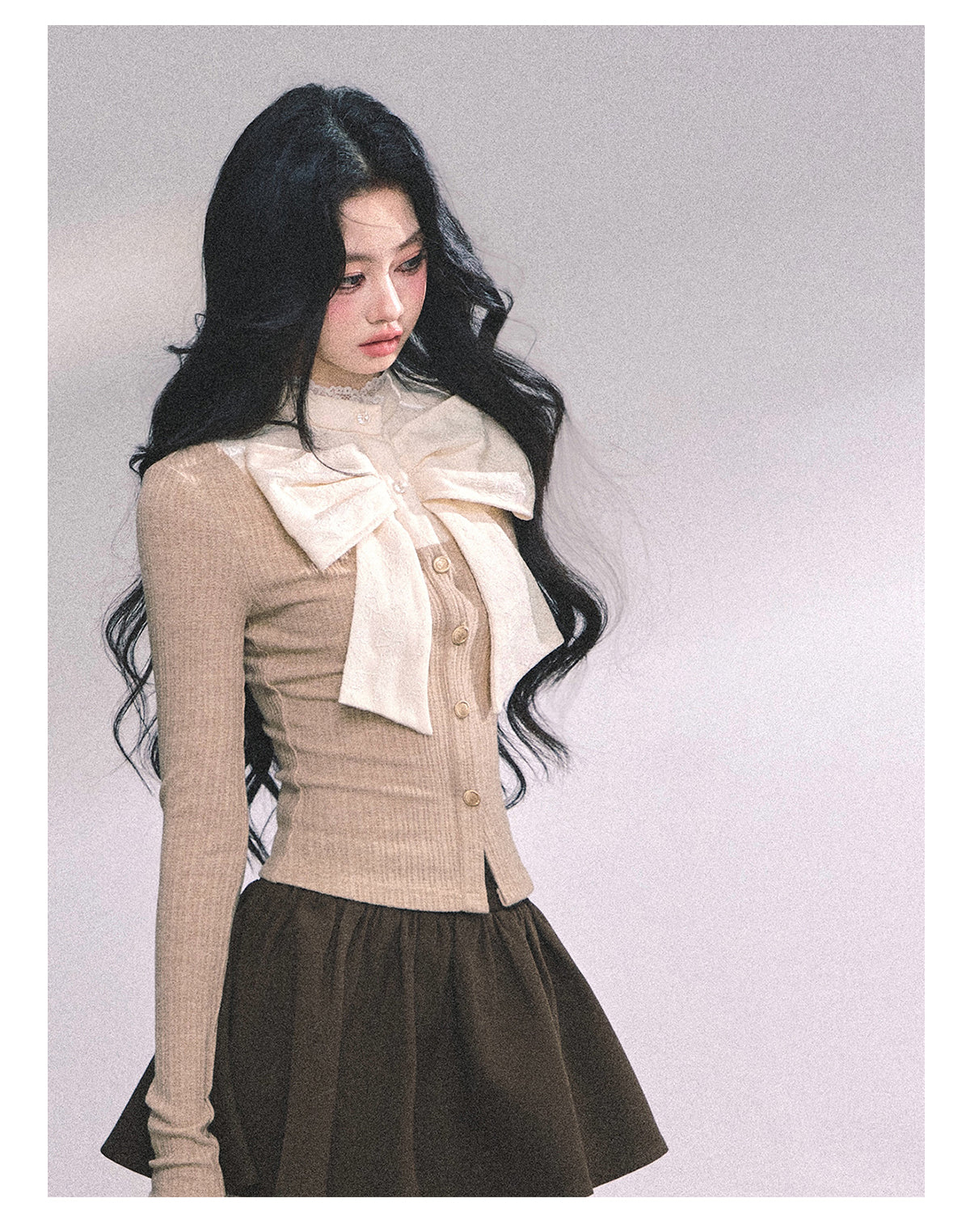 ShaoYeYan Chanson Crêpe Fake Two-Layer French Bow Lace T-Shirt