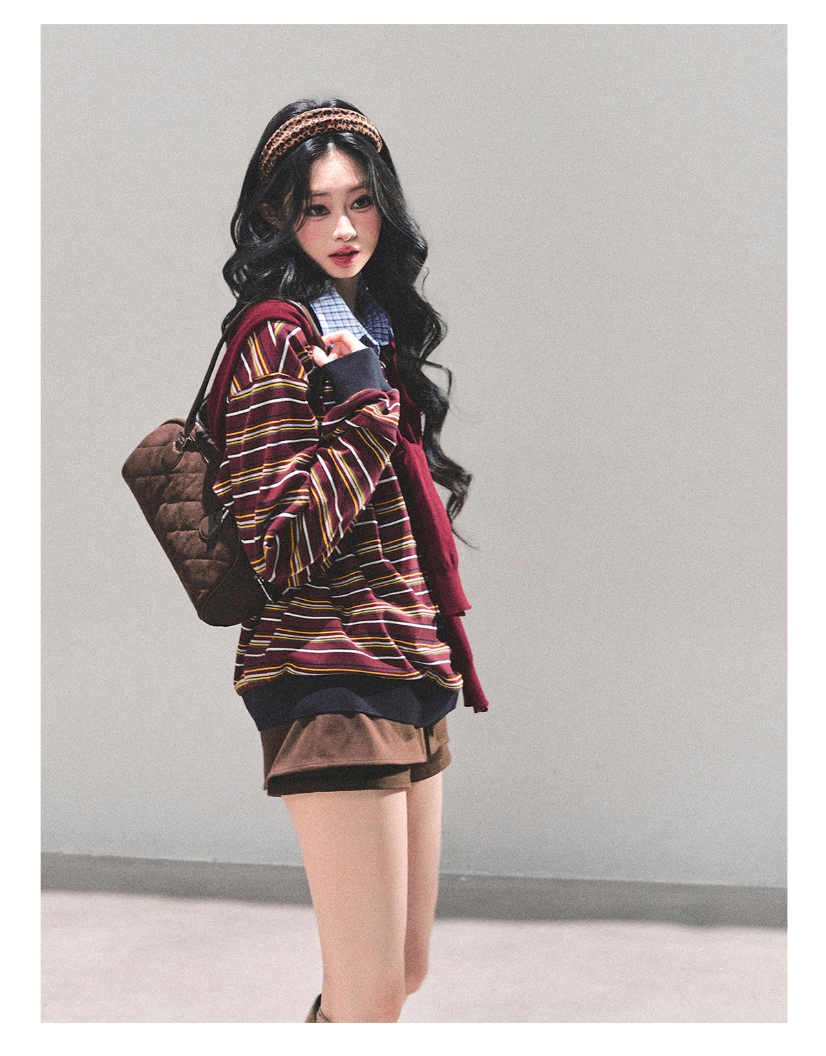 ShaoYeYan Fake Two-Layer Striped Polo Collar T-Shirt