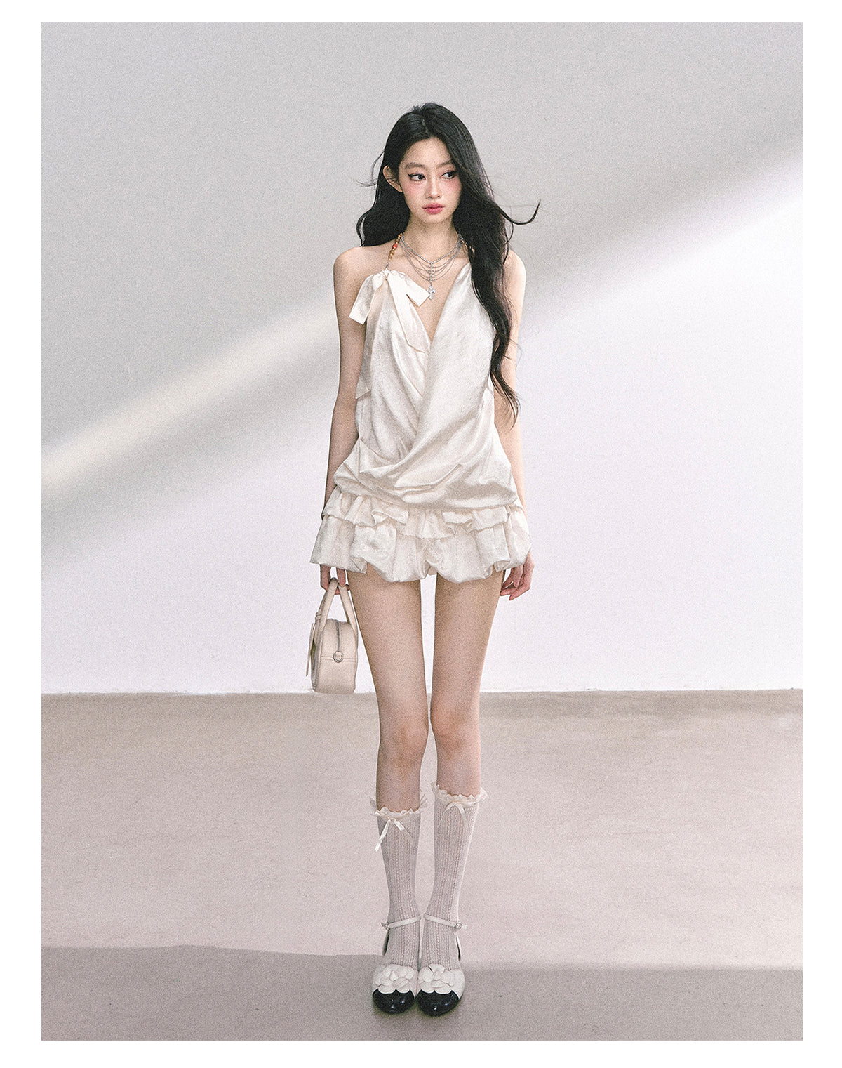✔ Sophisticated halter neckline