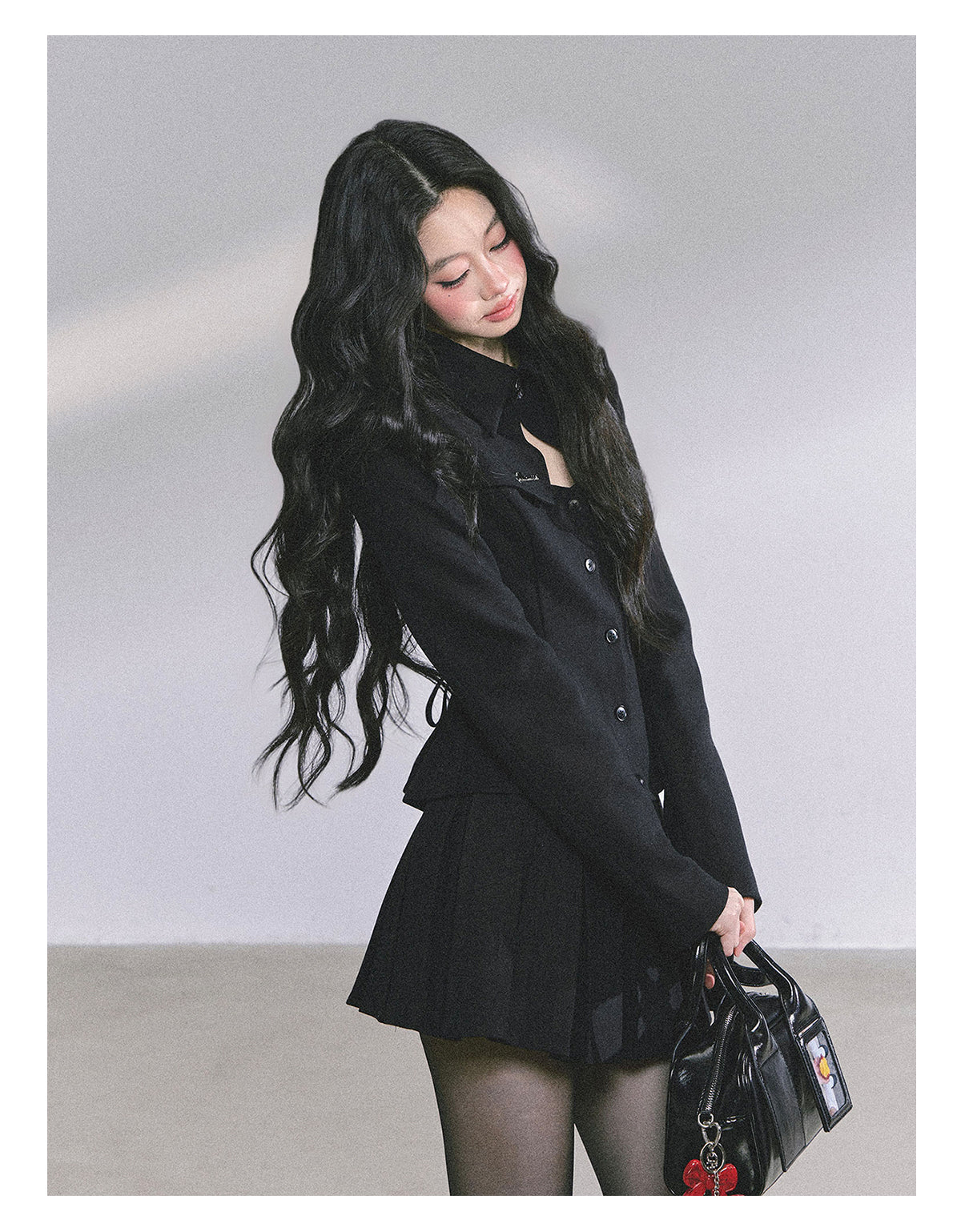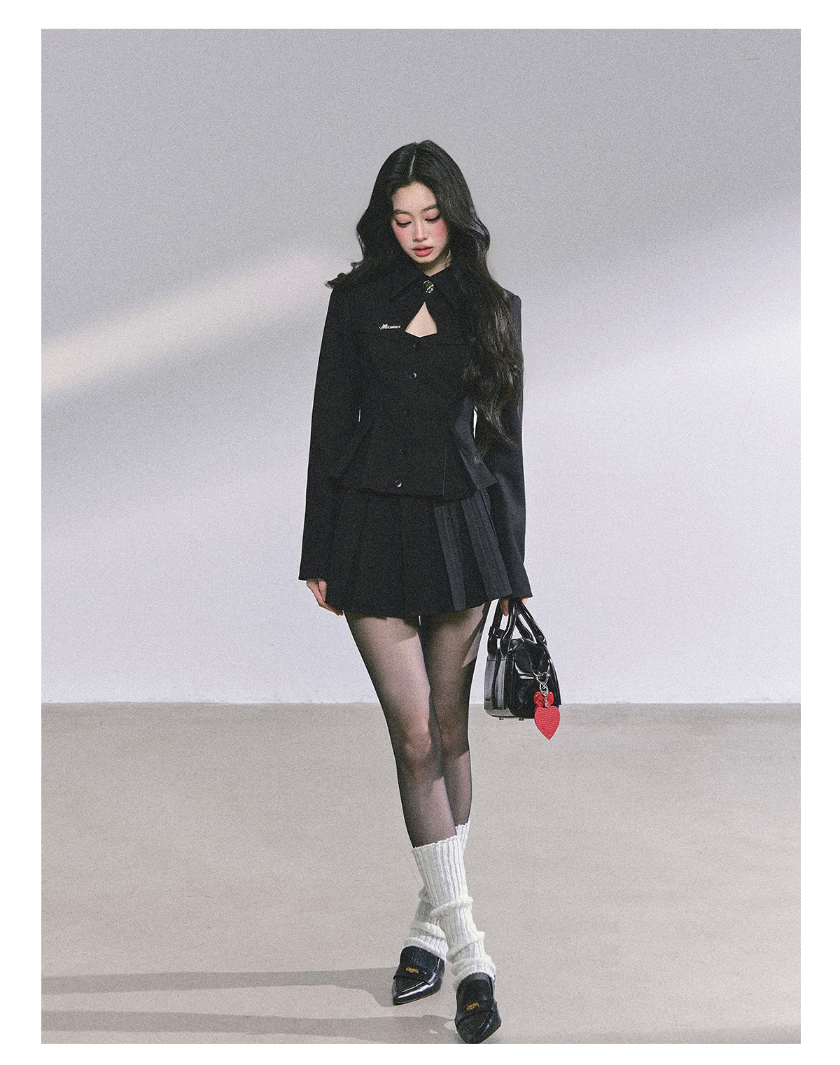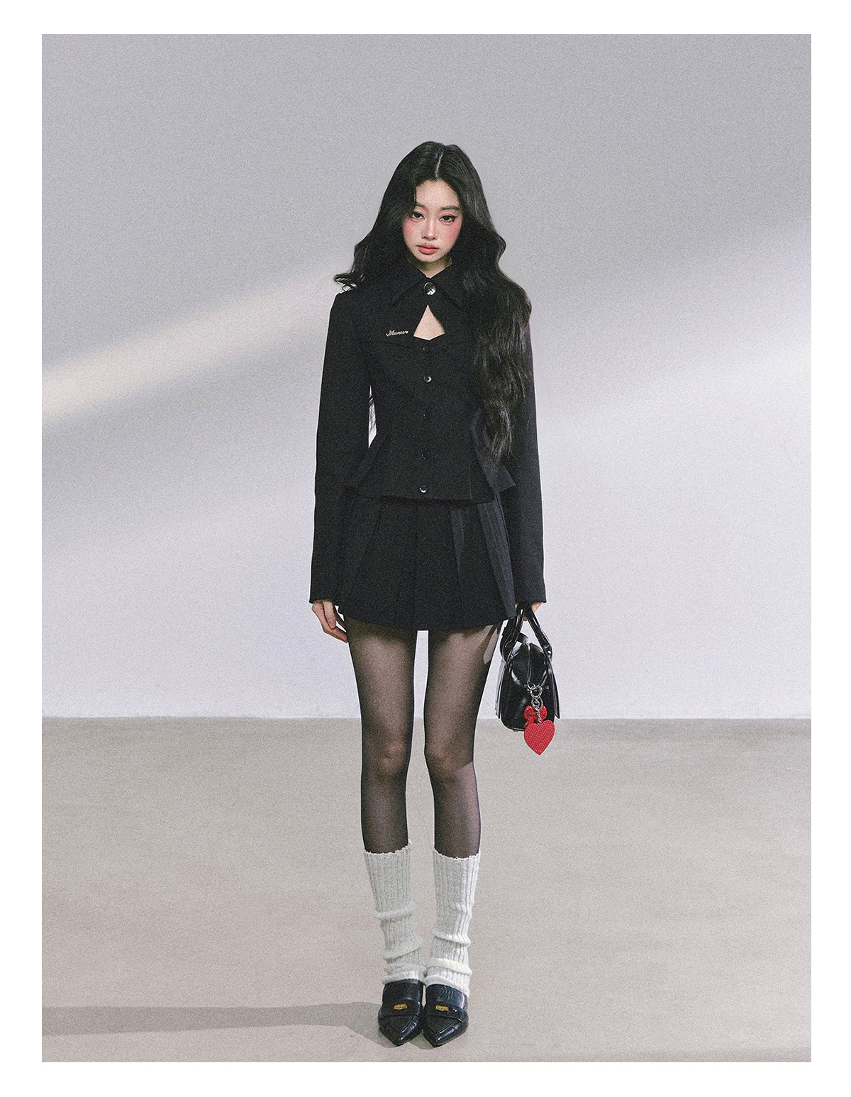 This elegant two-piece women’s outfit combines a classic black blazer with a pleated mini skirt, designed in a refined French heiress style with subtle British-inspired charm. Perfect for autumn occasions, whether office, evening gatherings, or daily wear, it brings together sophistication and versatility. Crafted from 95% polyester (dacron) and 5% other fibers, the set features a polo-style top design paired with a pleated skirt. Available in sizes S, M, and L, this chic ensemble is a timeless addition to your autumn wardrobe.