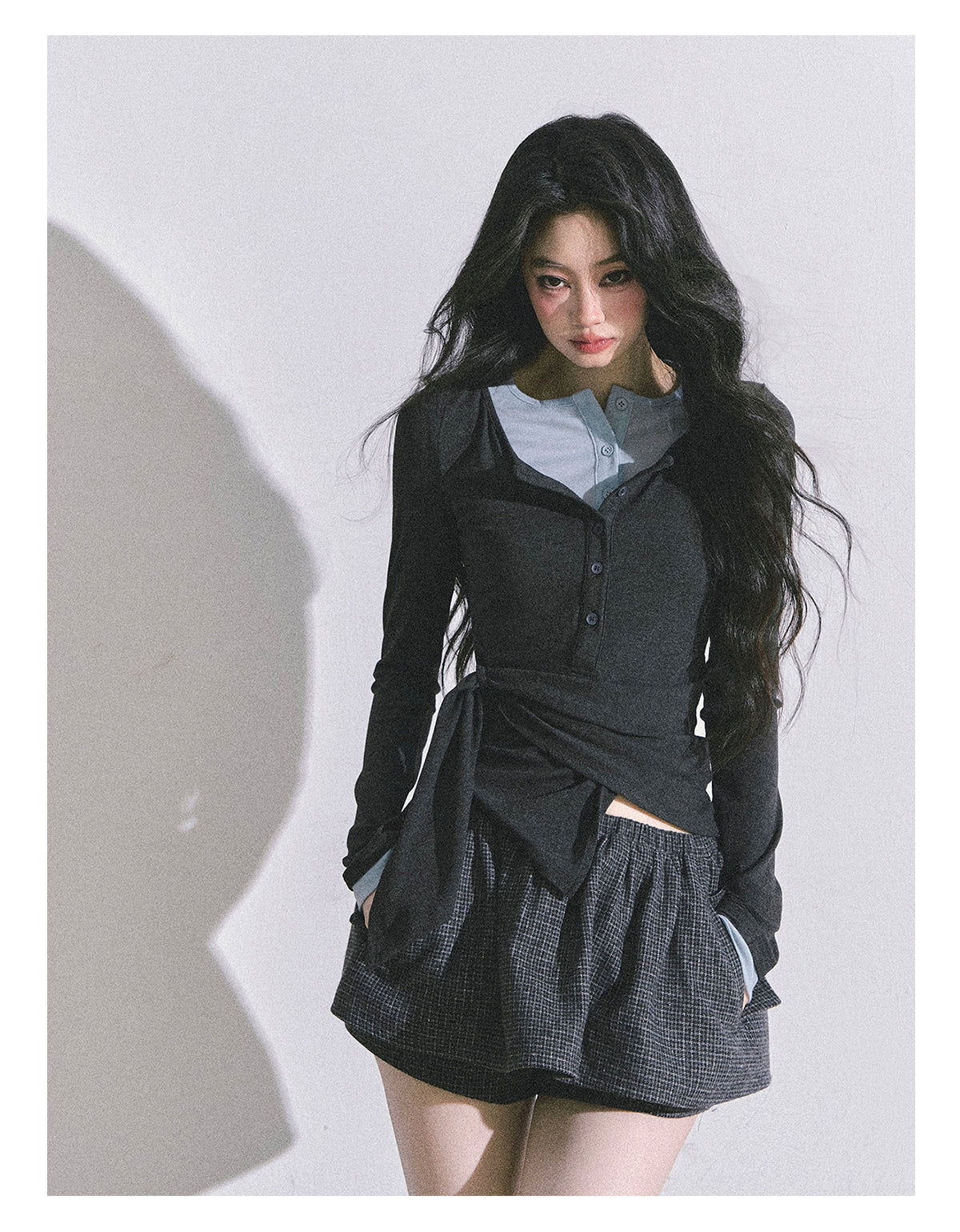 ShaoYeYan Hayton Academy Fake Two-Layer American Long Sleeve Top