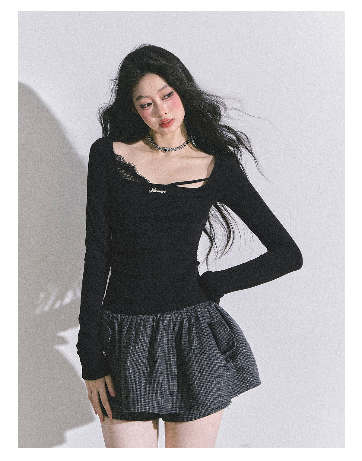 Project a smart, sophisticated "high IQ" aesthetic with this chic Korean-style lace T-shirt.