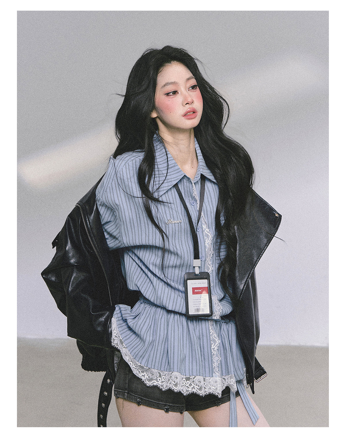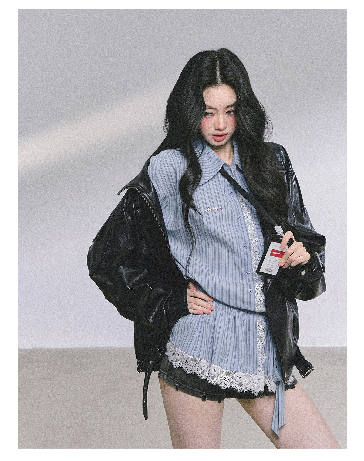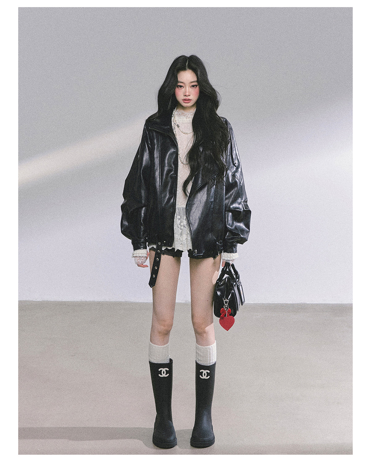 ShaoYeYan Mafia Princess Oversized Slim-Fit Black PU Leather Jacket