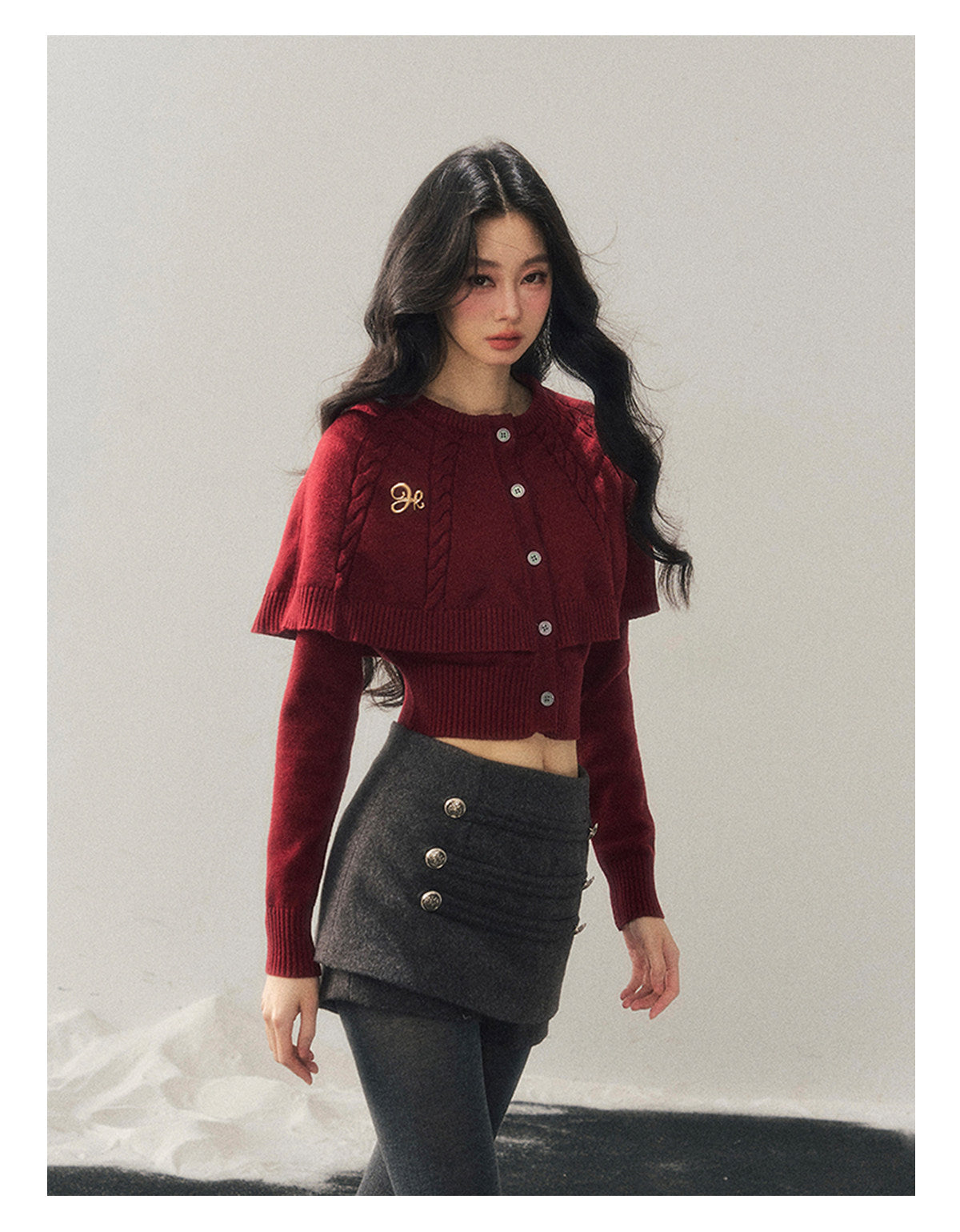 ShaoYeYan Miss Daisy American Knit Cable Cape Sweater
