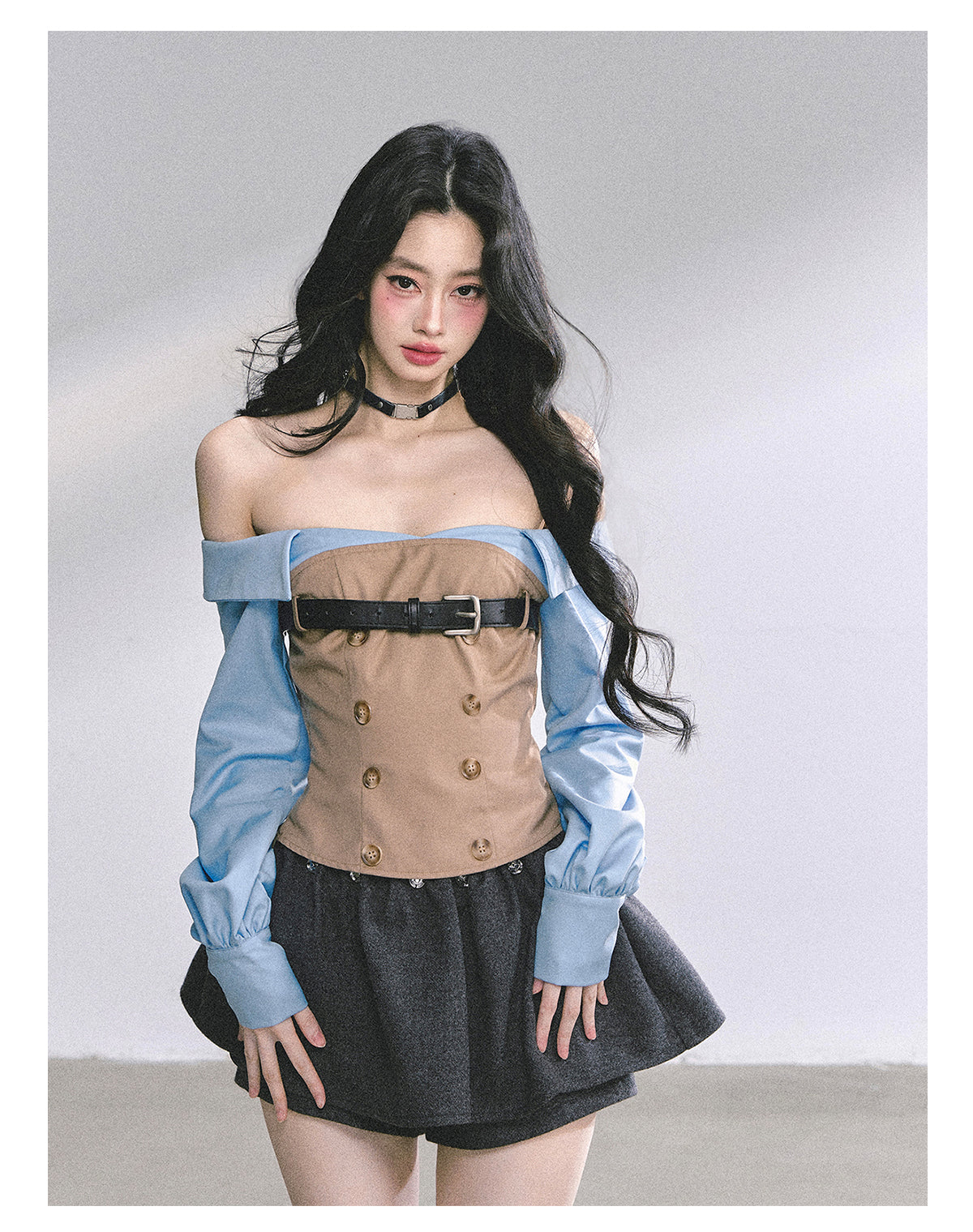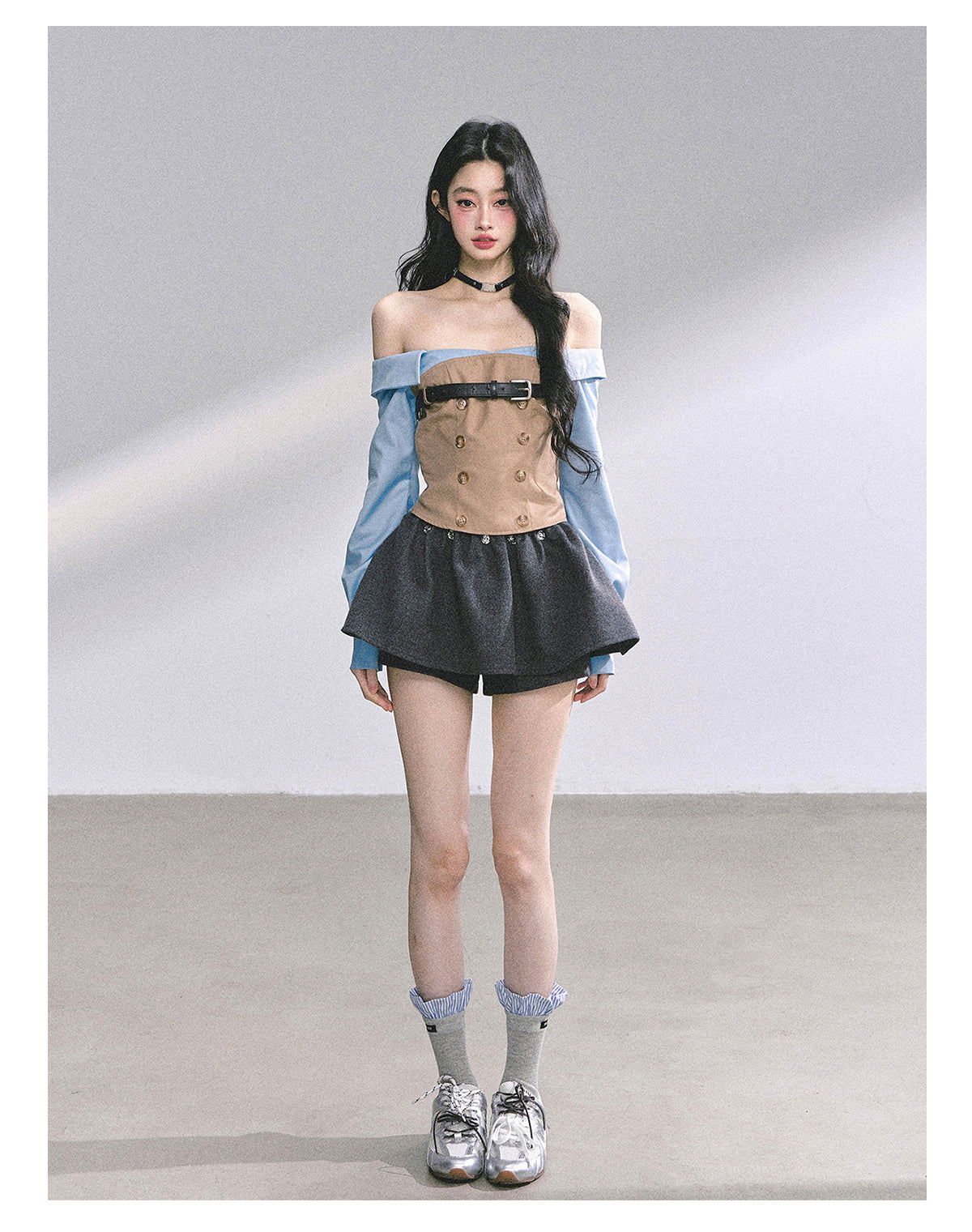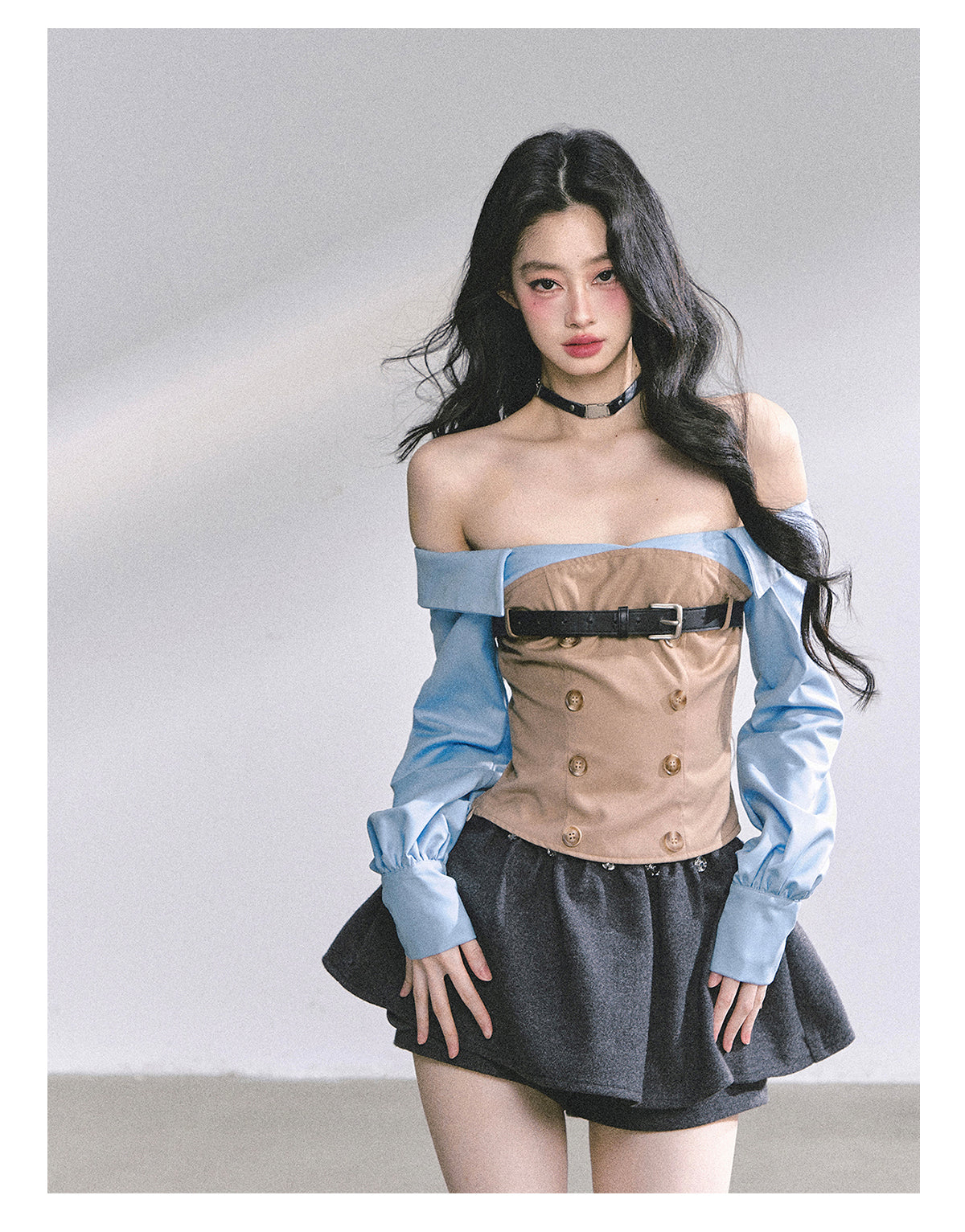Fashionable mock two-layer design with a slimming silhouette