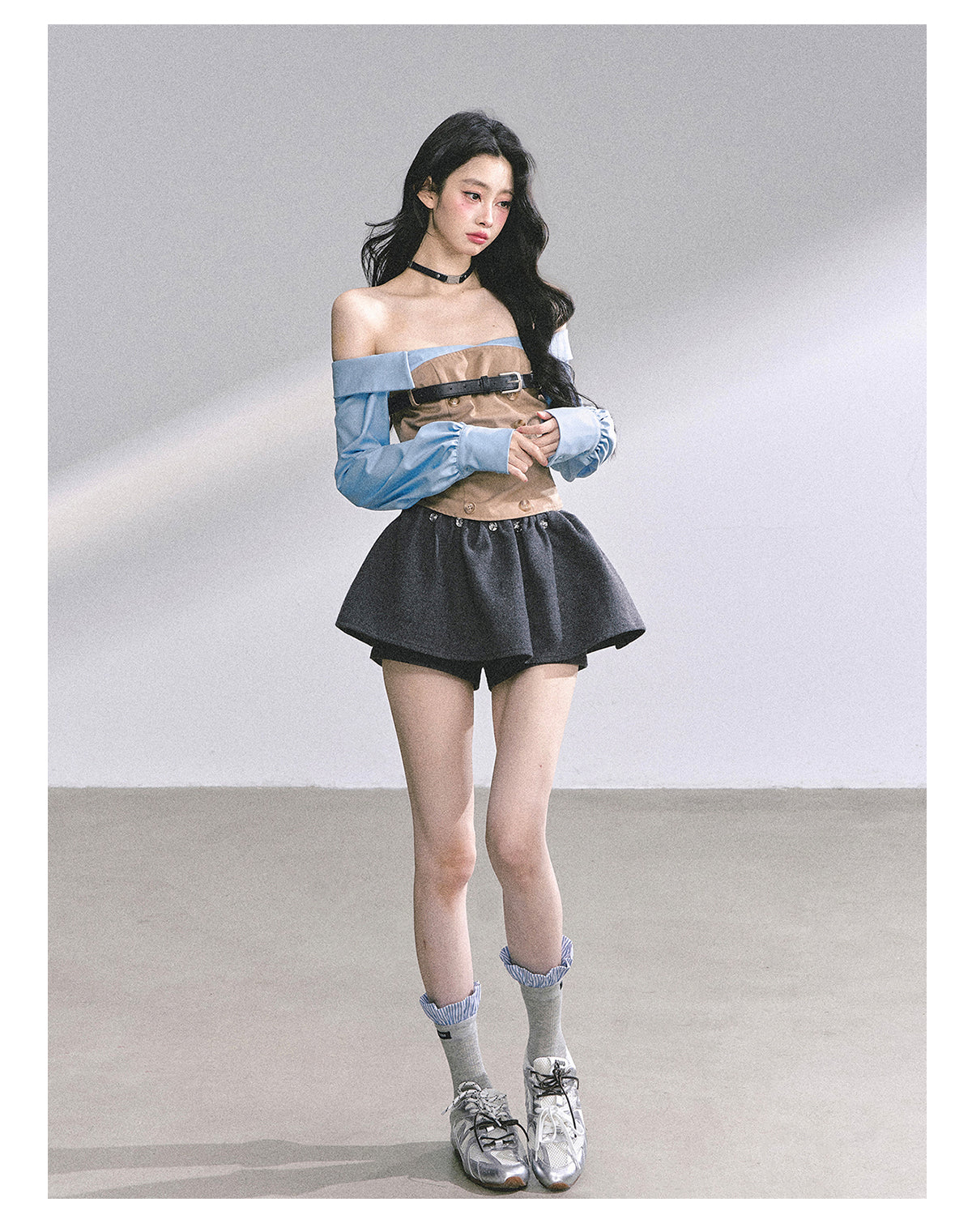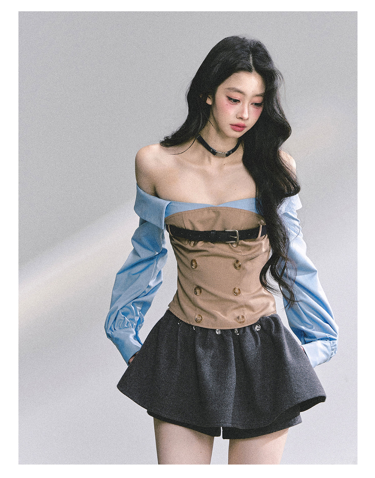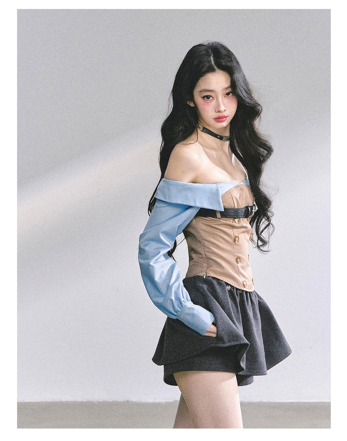 Fashionable mock two-layer design with a slimming silhouette