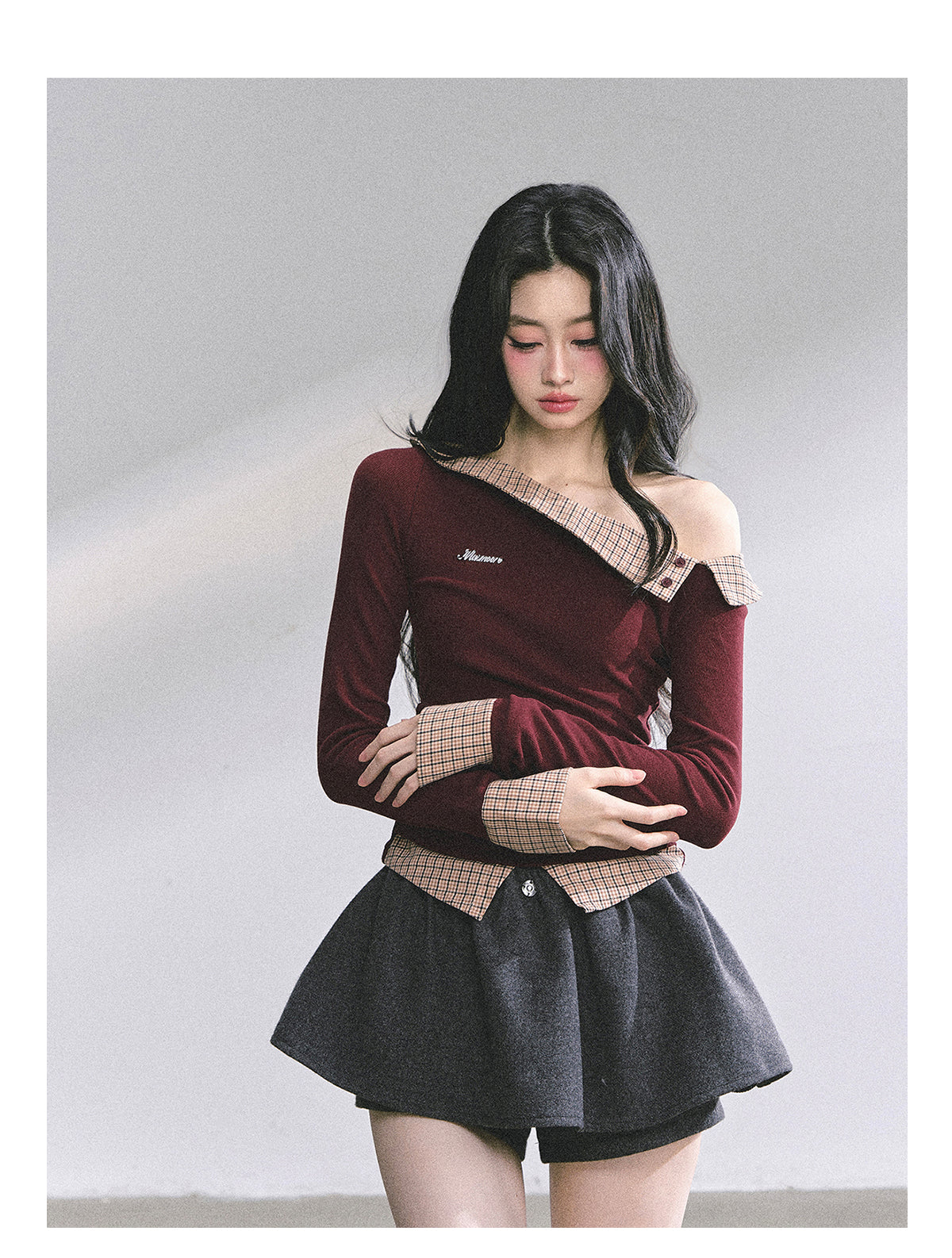 Fashion-forward mock two-layer design with striped detailing
