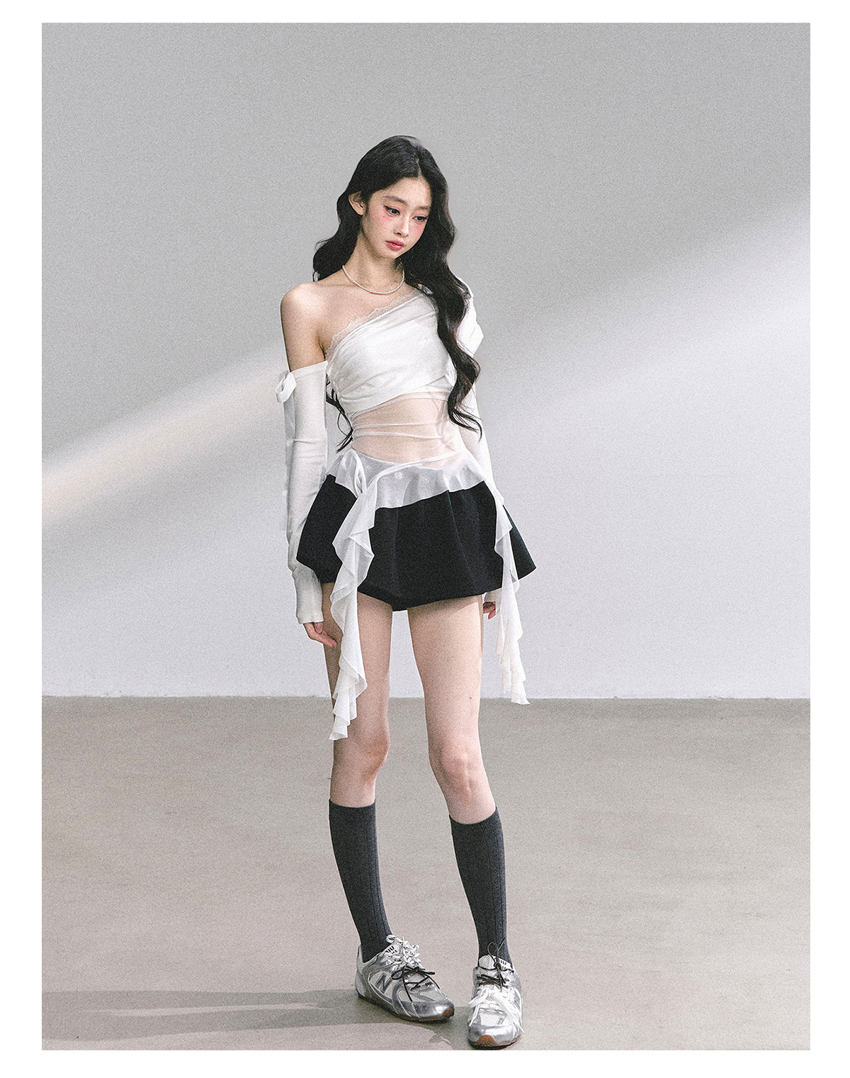SHAOYEYAN Off-Shoulder Lace Slim Fit Long Sleeve Tee
