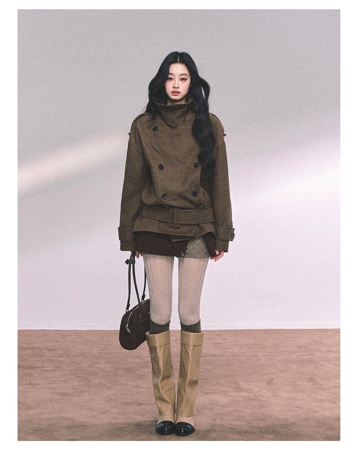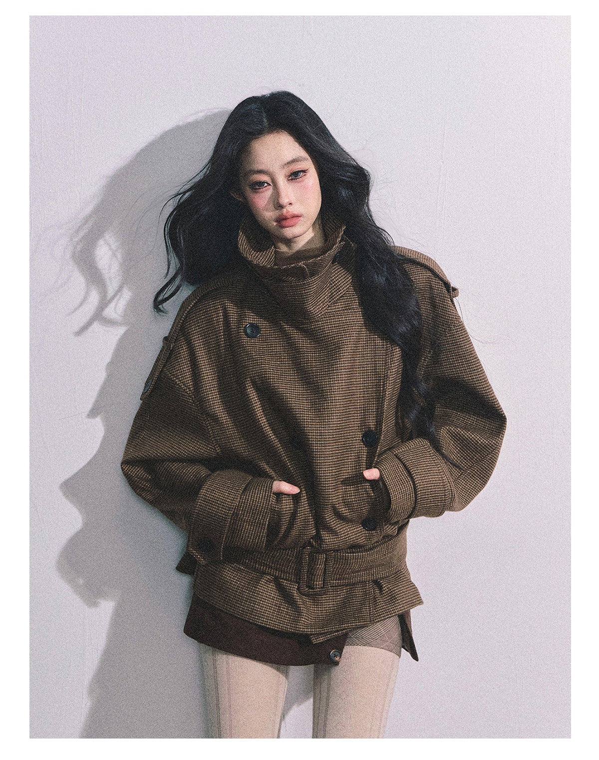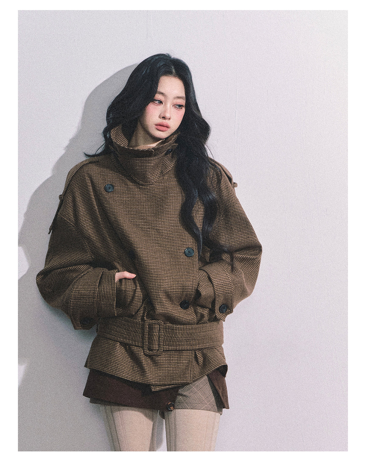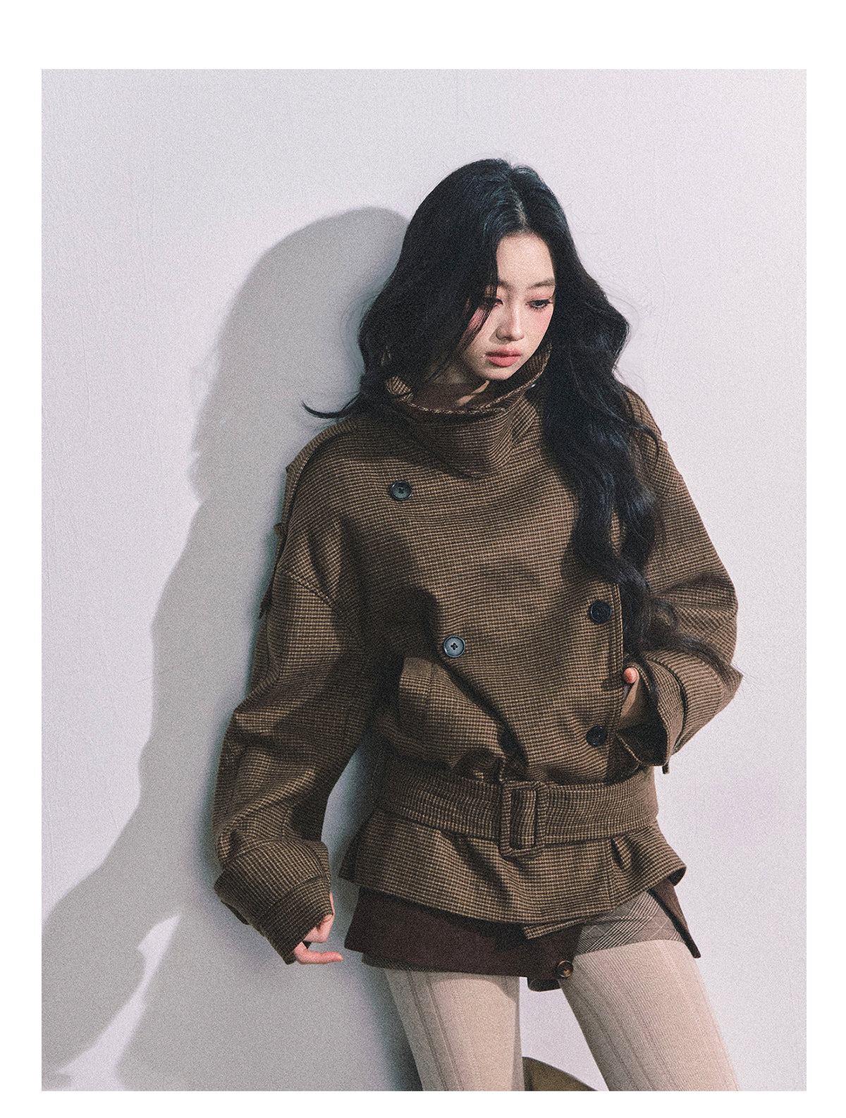 ShaoYeYan Sunset Harbor French British Style Plaid Trench Coat