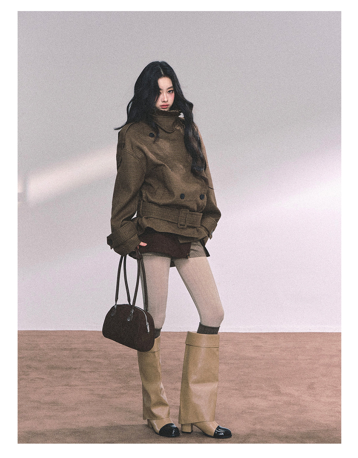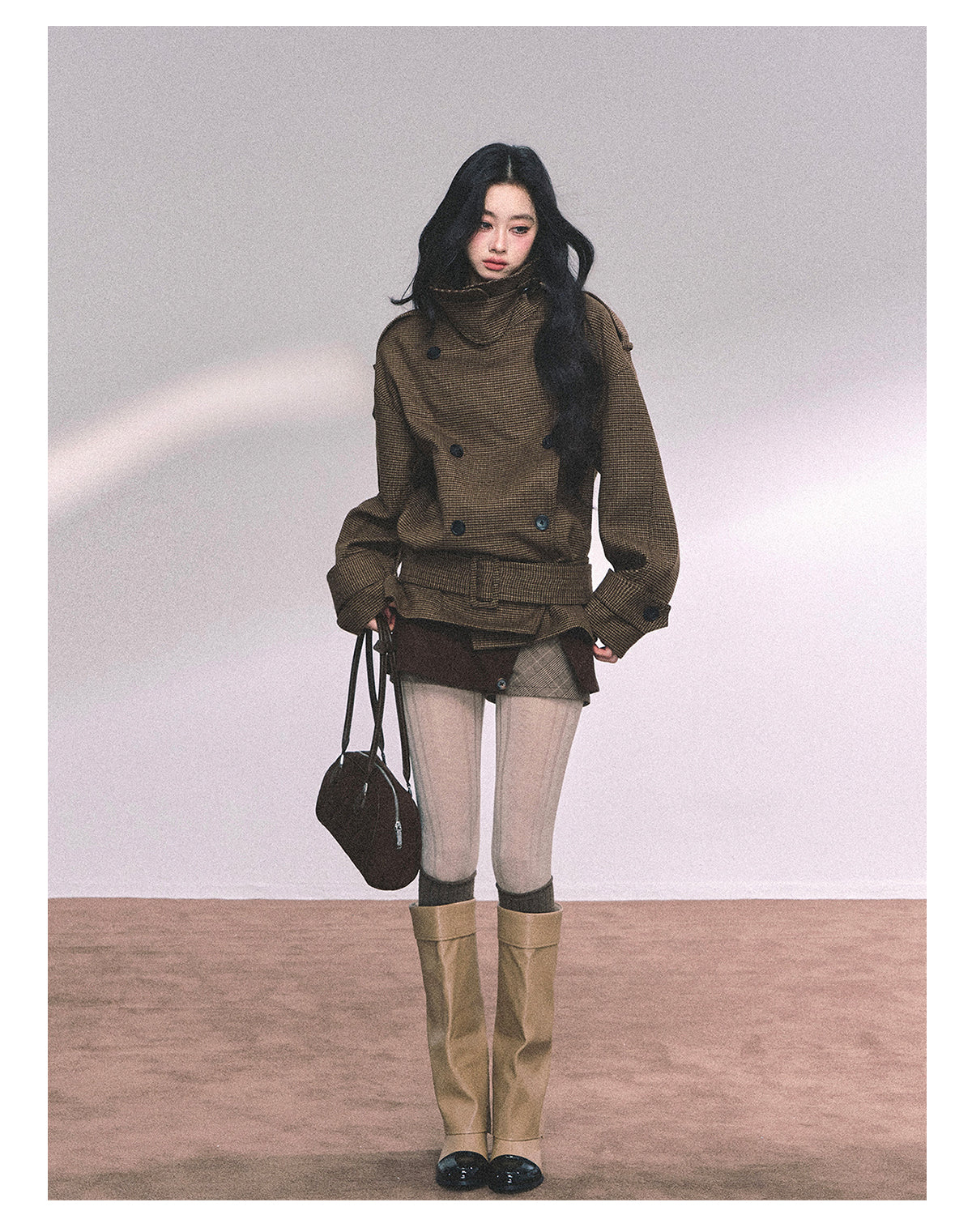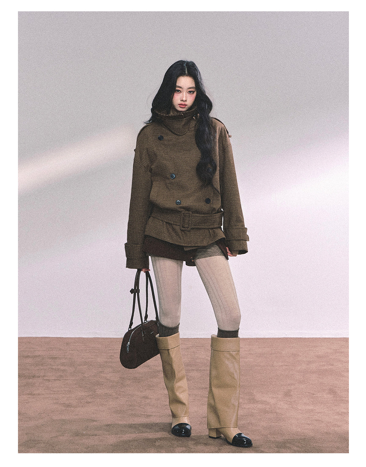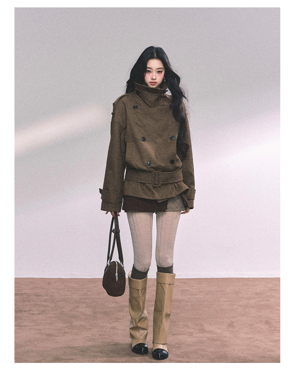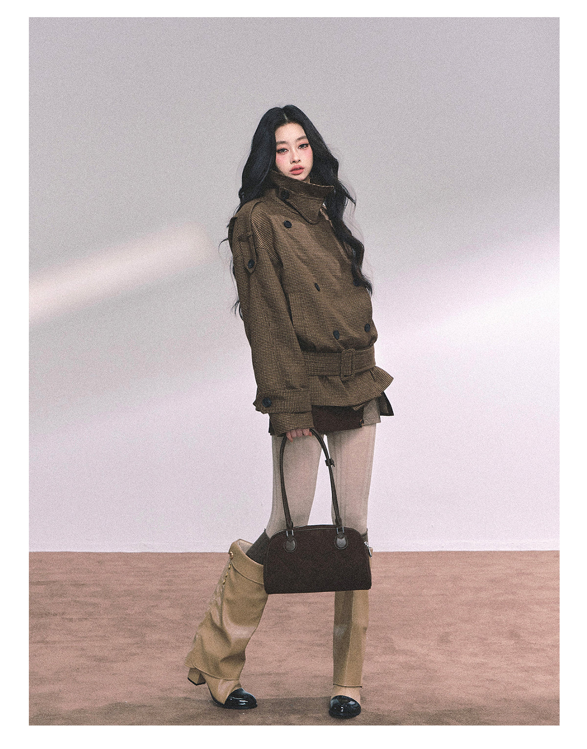 ShaoYeYan Sunset Harbor French British Style Plaid Trench Coat
