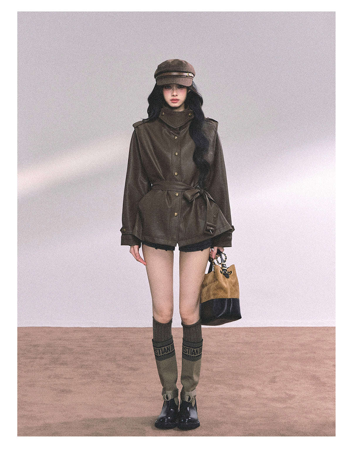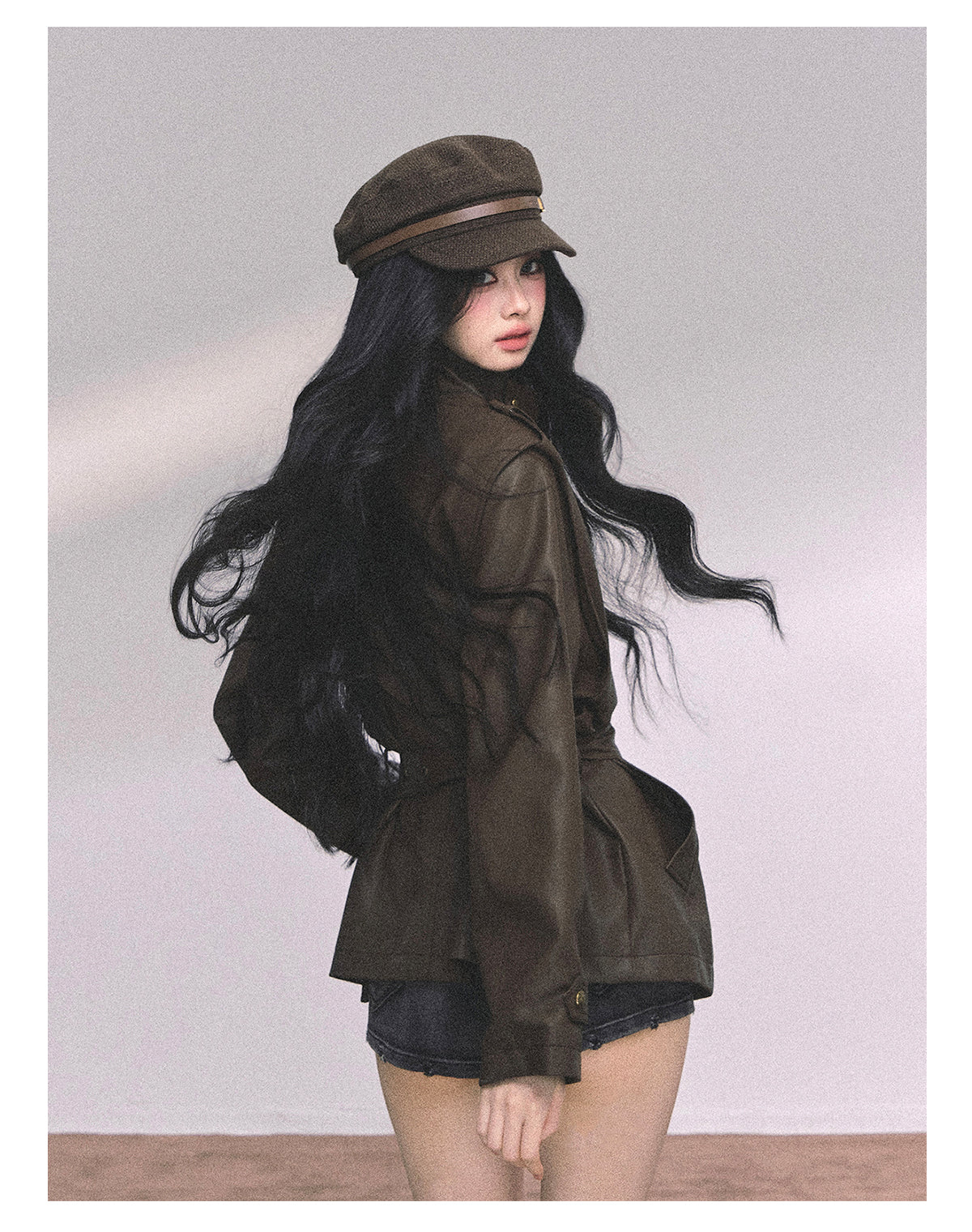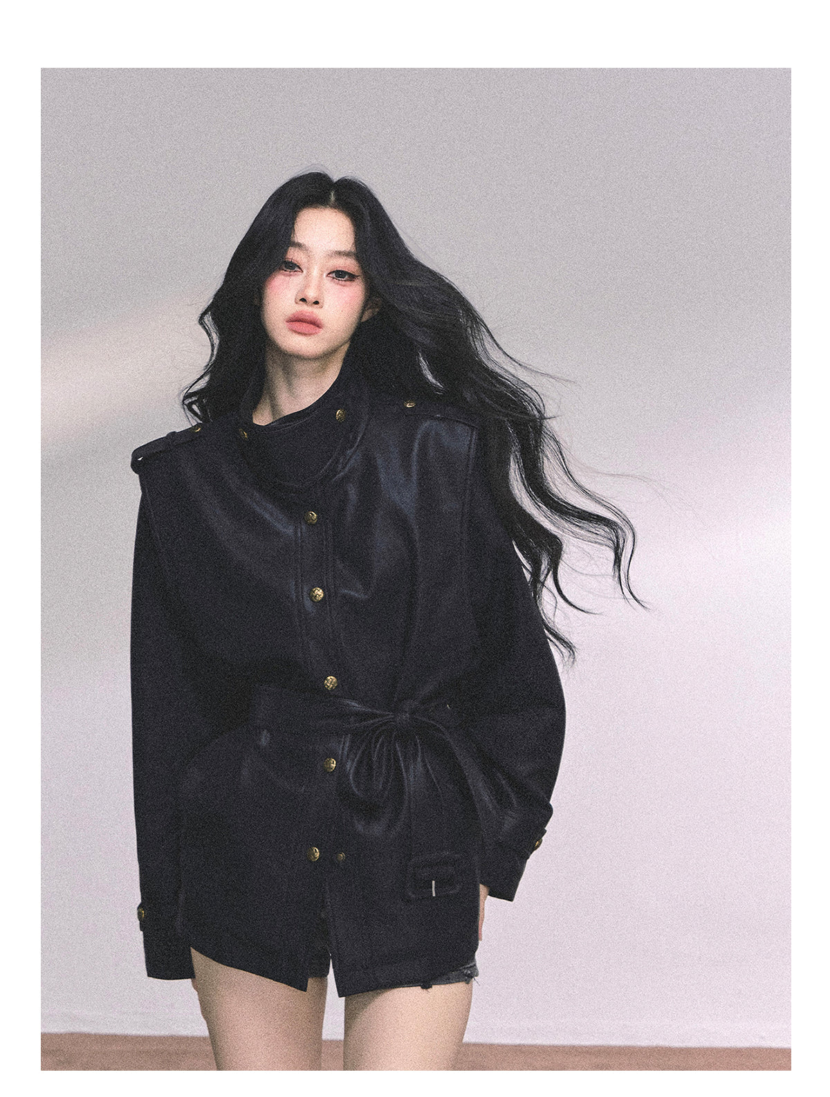 ShaoYeYan UK Time Zone Loose Fit Biker PU Leather Jacket