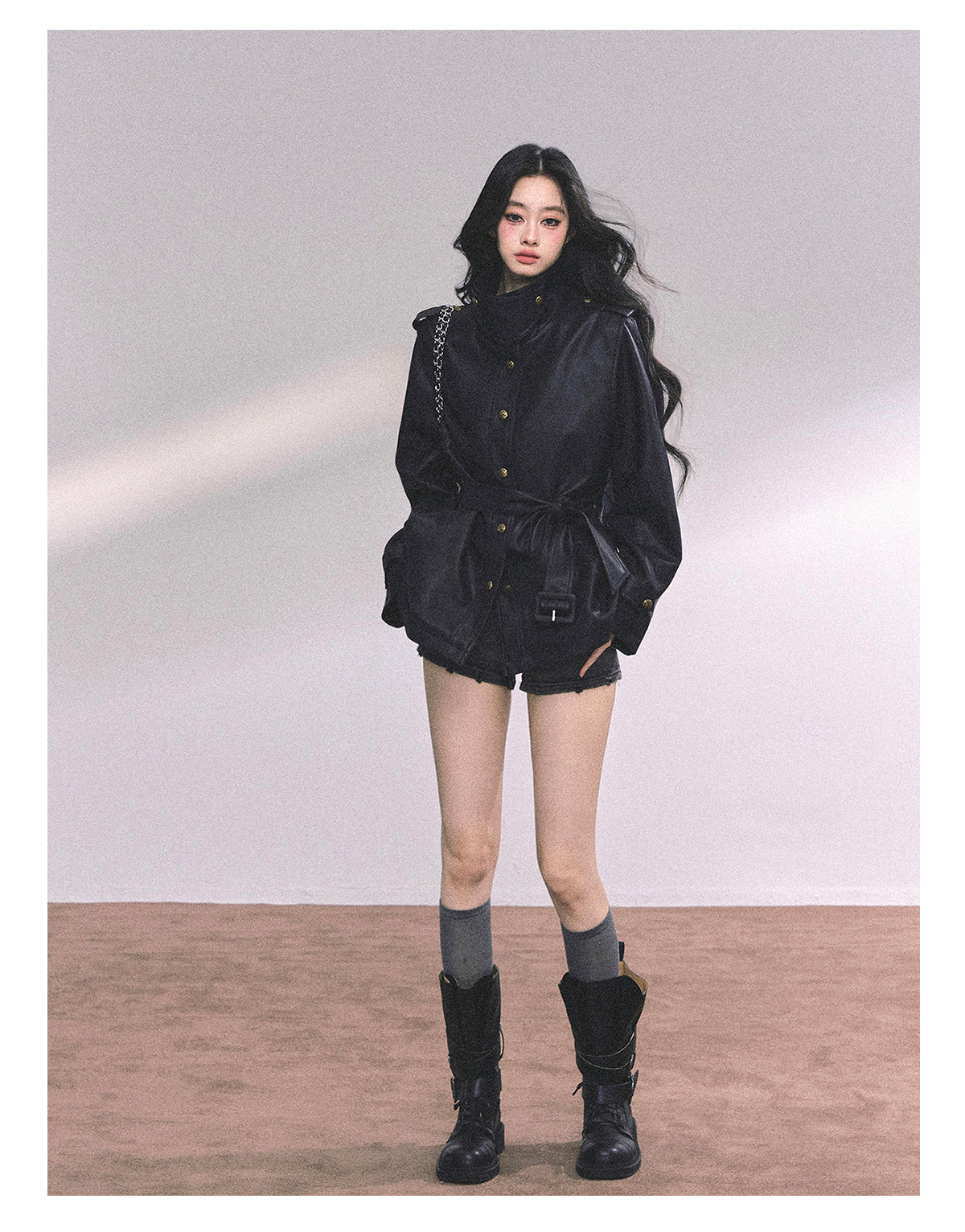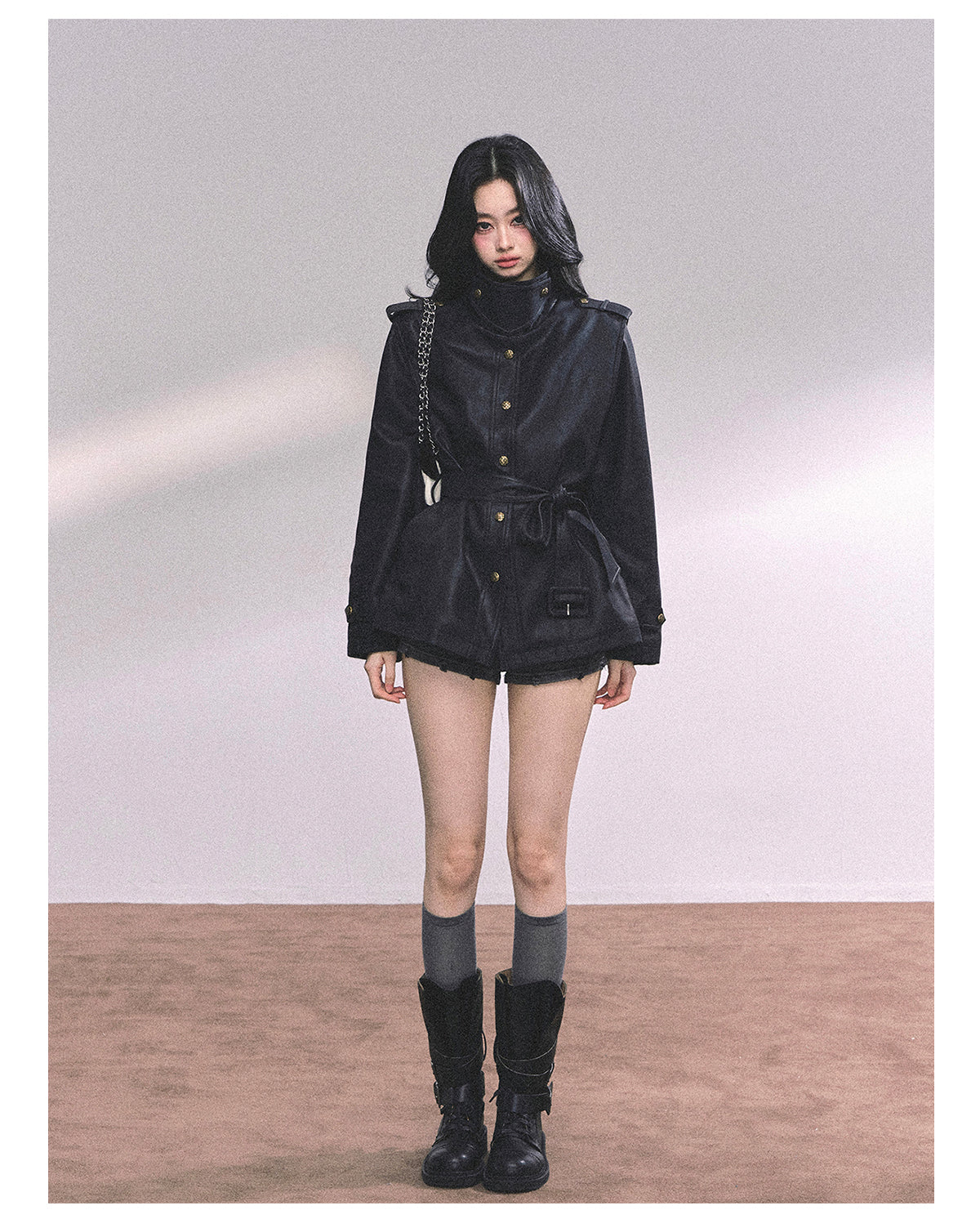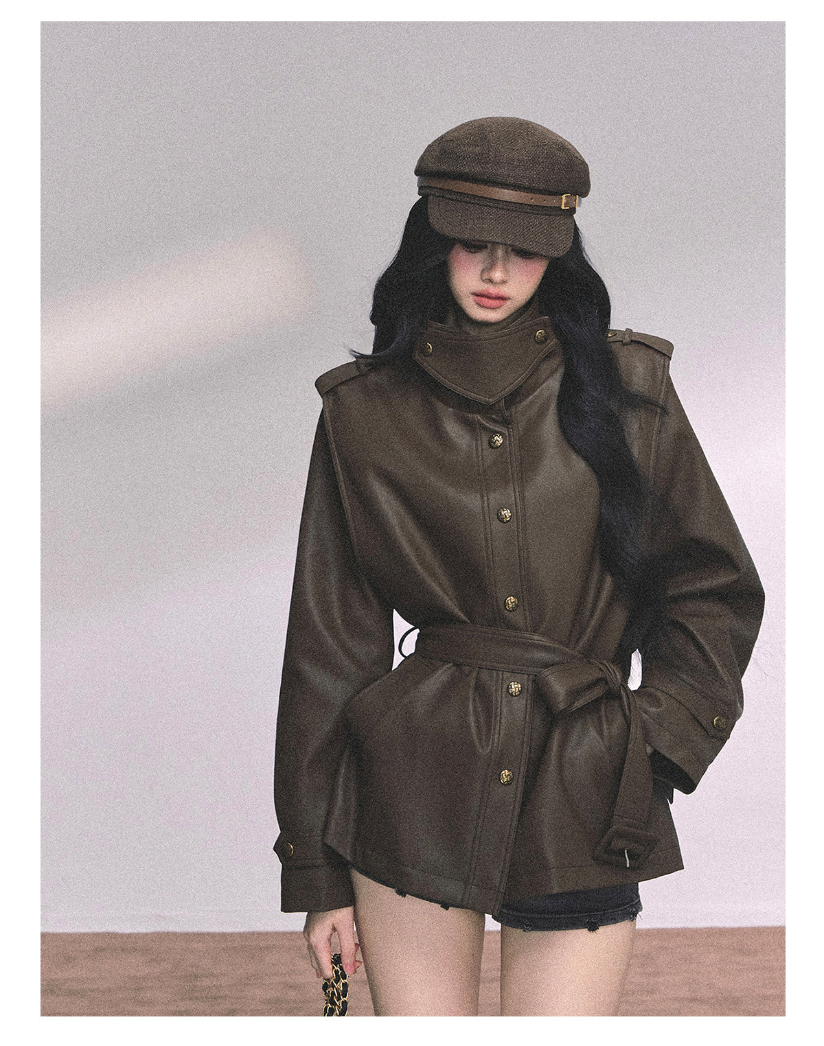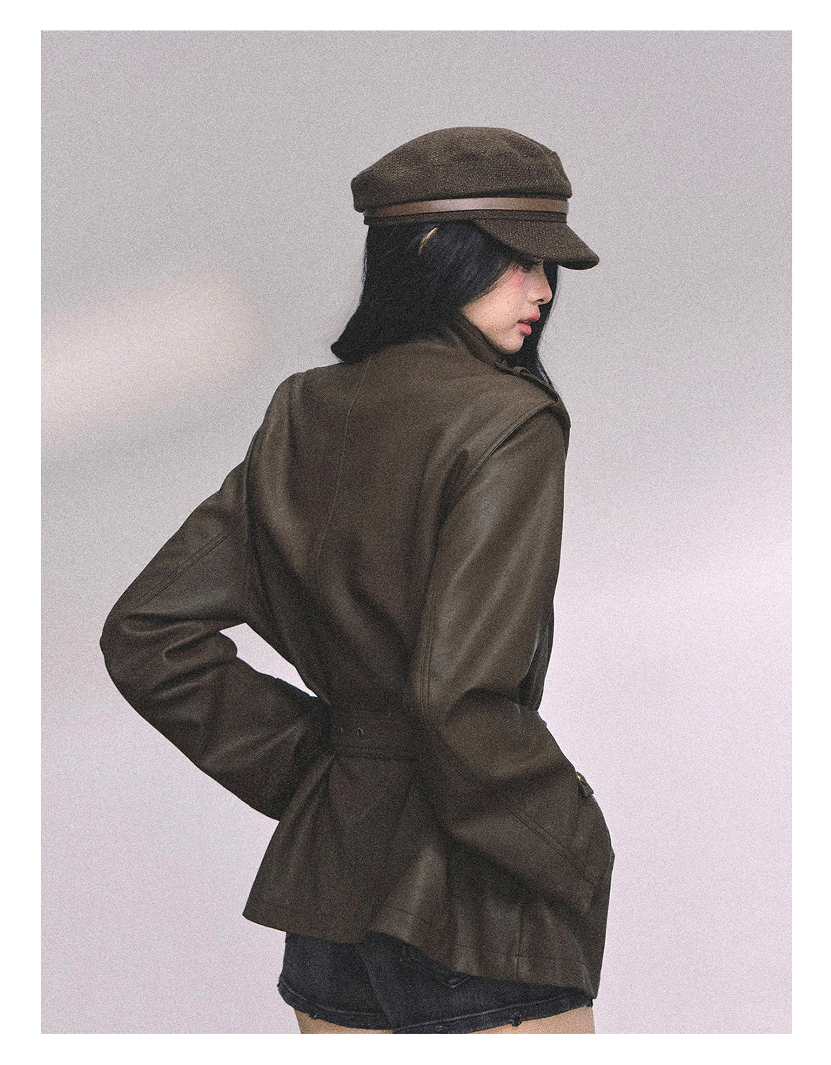 ShaoYeYan UK Time Zone Loose Fit Biker PU Leather Jacket
