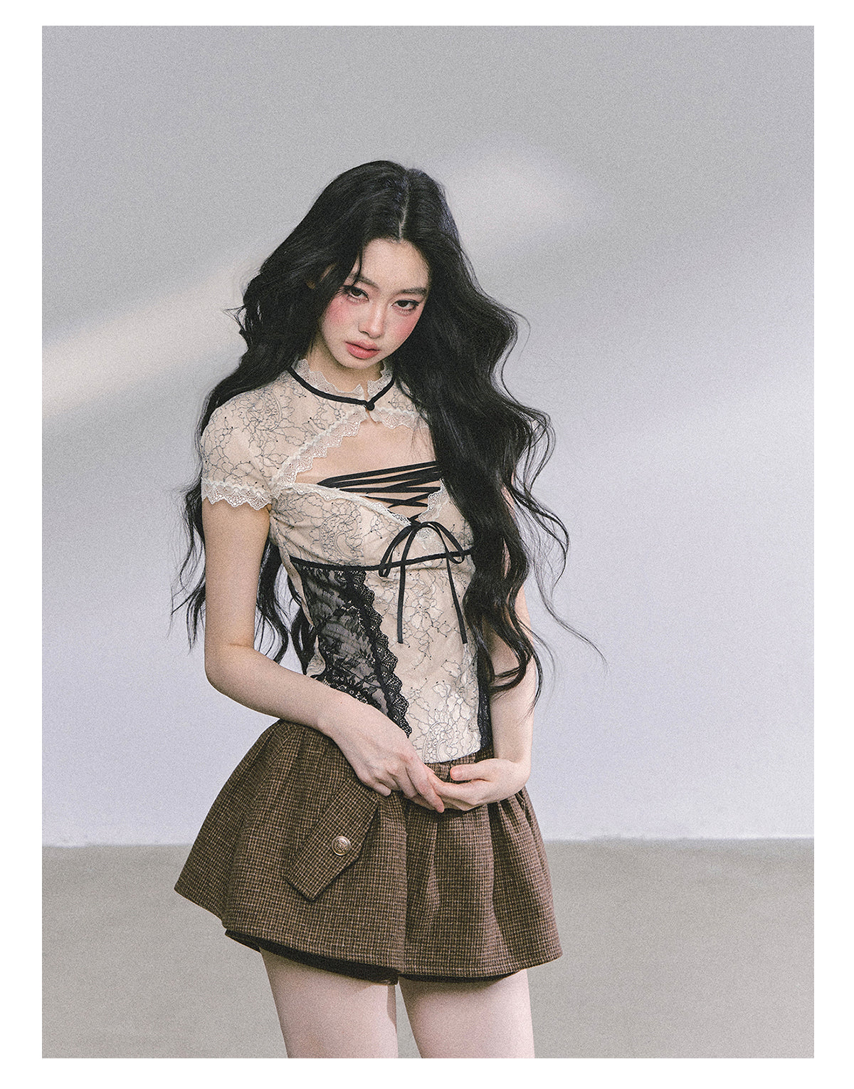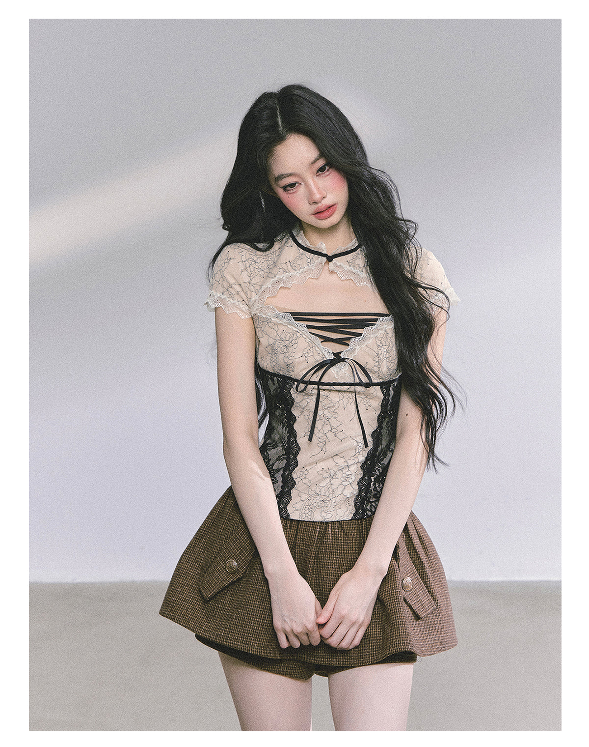 Blend tradition with modernity in this elegant "New Chinese Style" lace T-shirt.