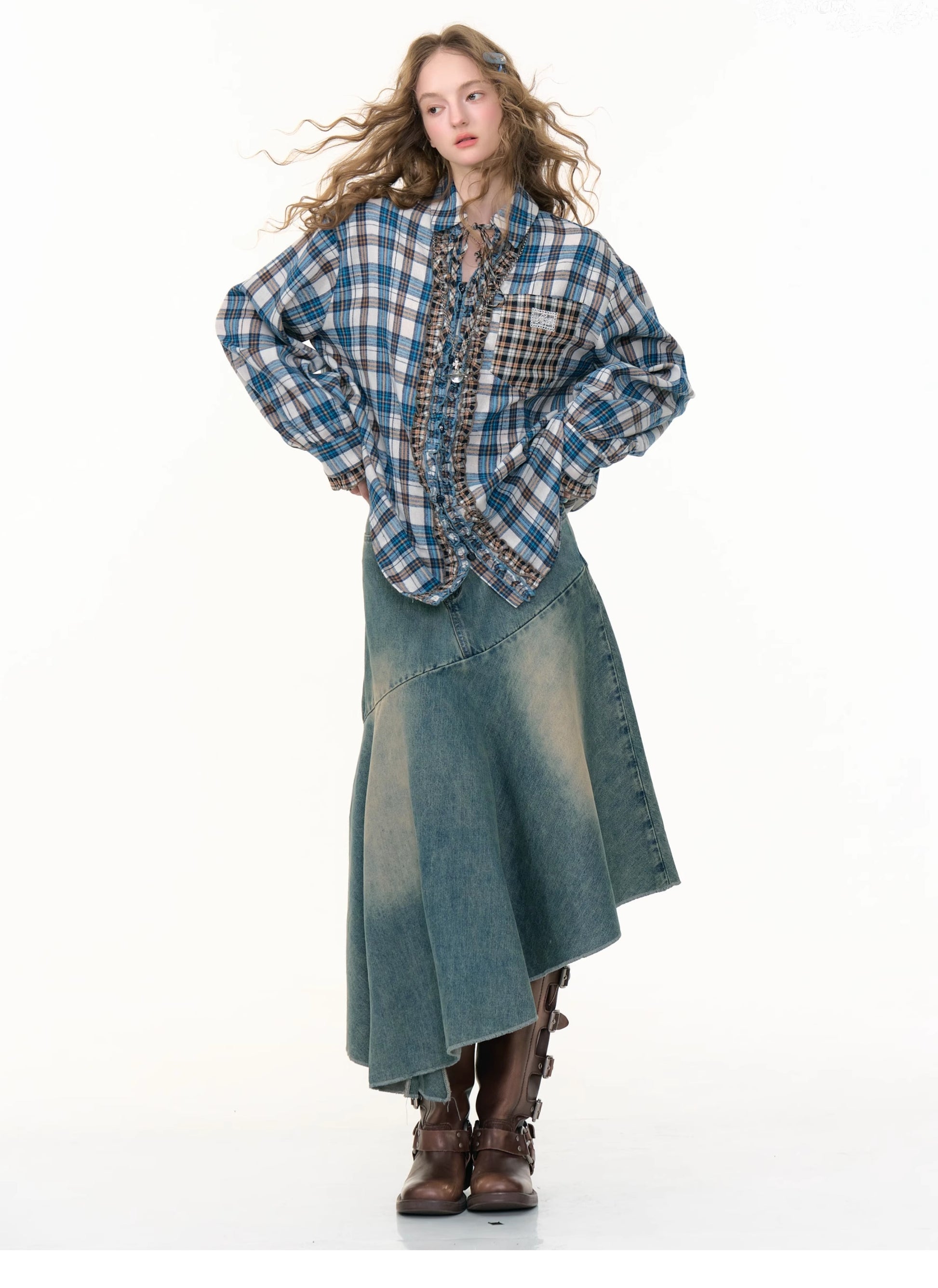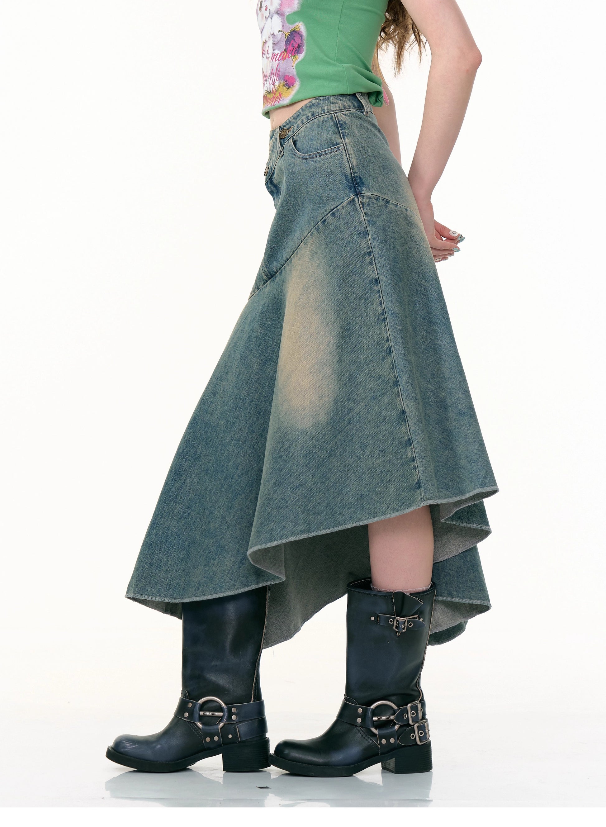 ZiziFei Asymmetrical Denim Midi Skirt - 2025 Vintage High-Waisted Maxi Skirt