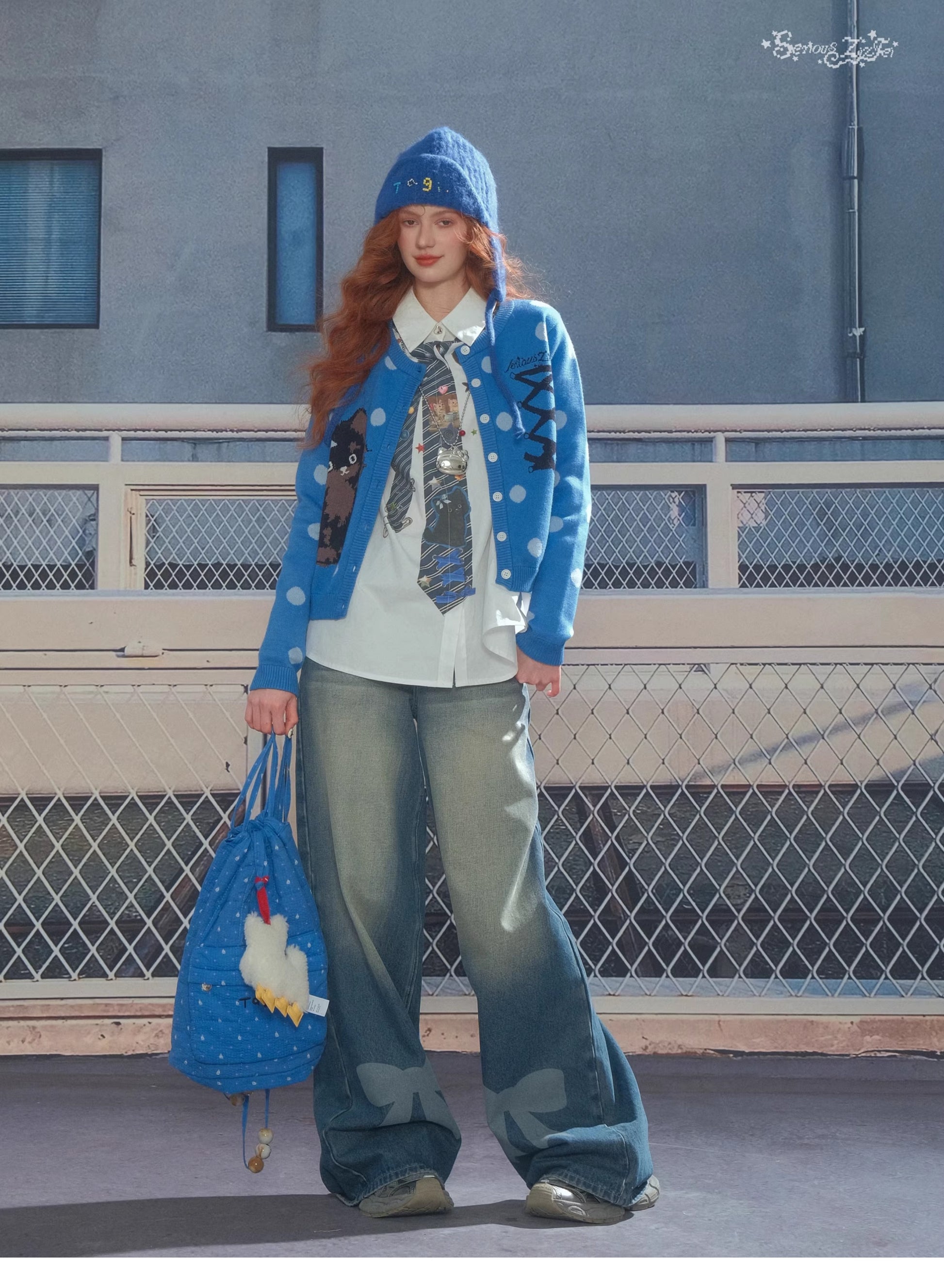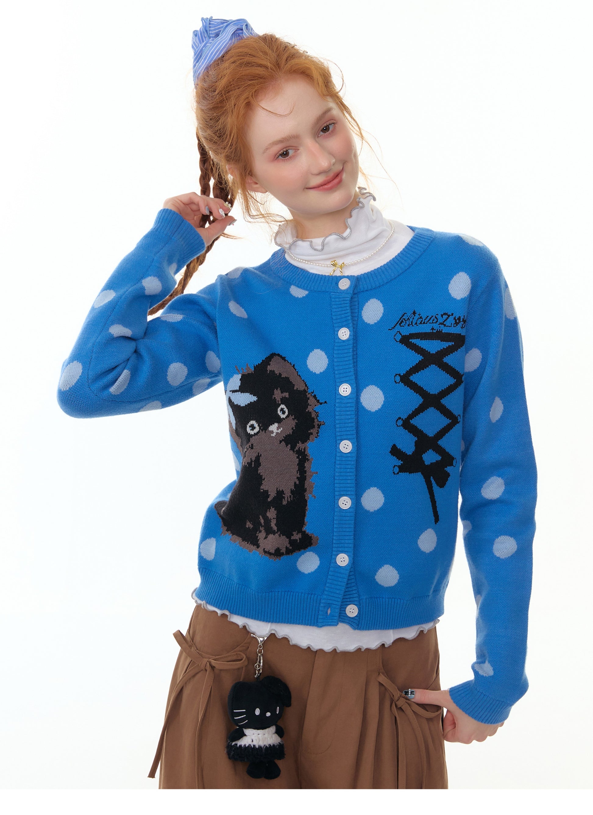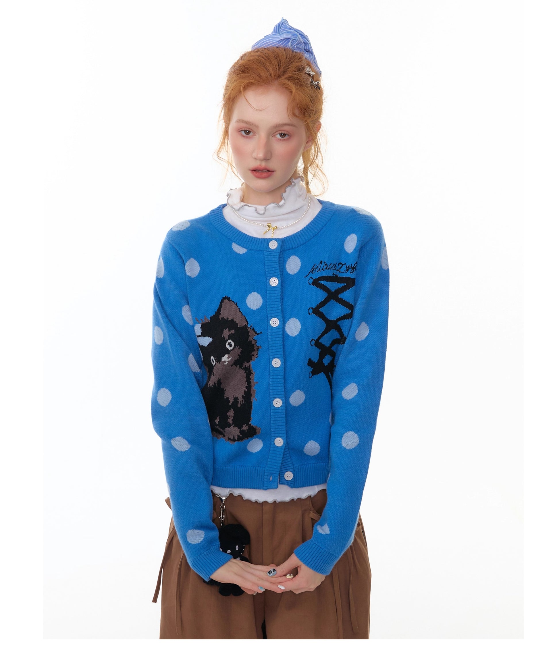 ZiziFei "Meow Sweetheart" Dot Knit Cardigan