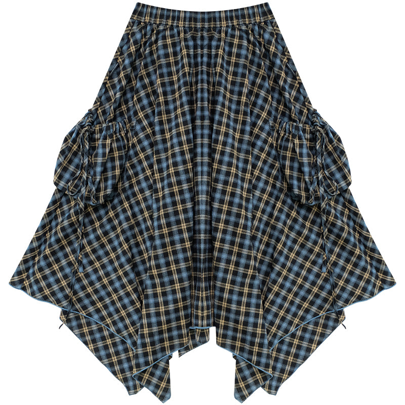 ZiziFei Plaid Utility Skirt - Vintage High-Waisted A-Line Midi Skirt